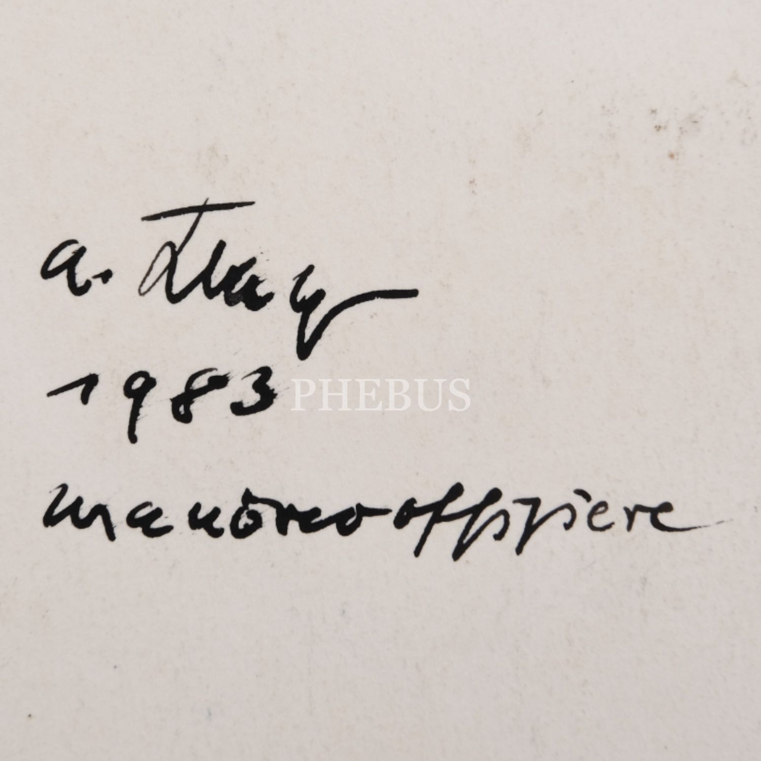 Albert Kley imzalı ve 1983 tarihli, kâğıt üzerine karışık teknik sokak manzarası, 42x30 cm...