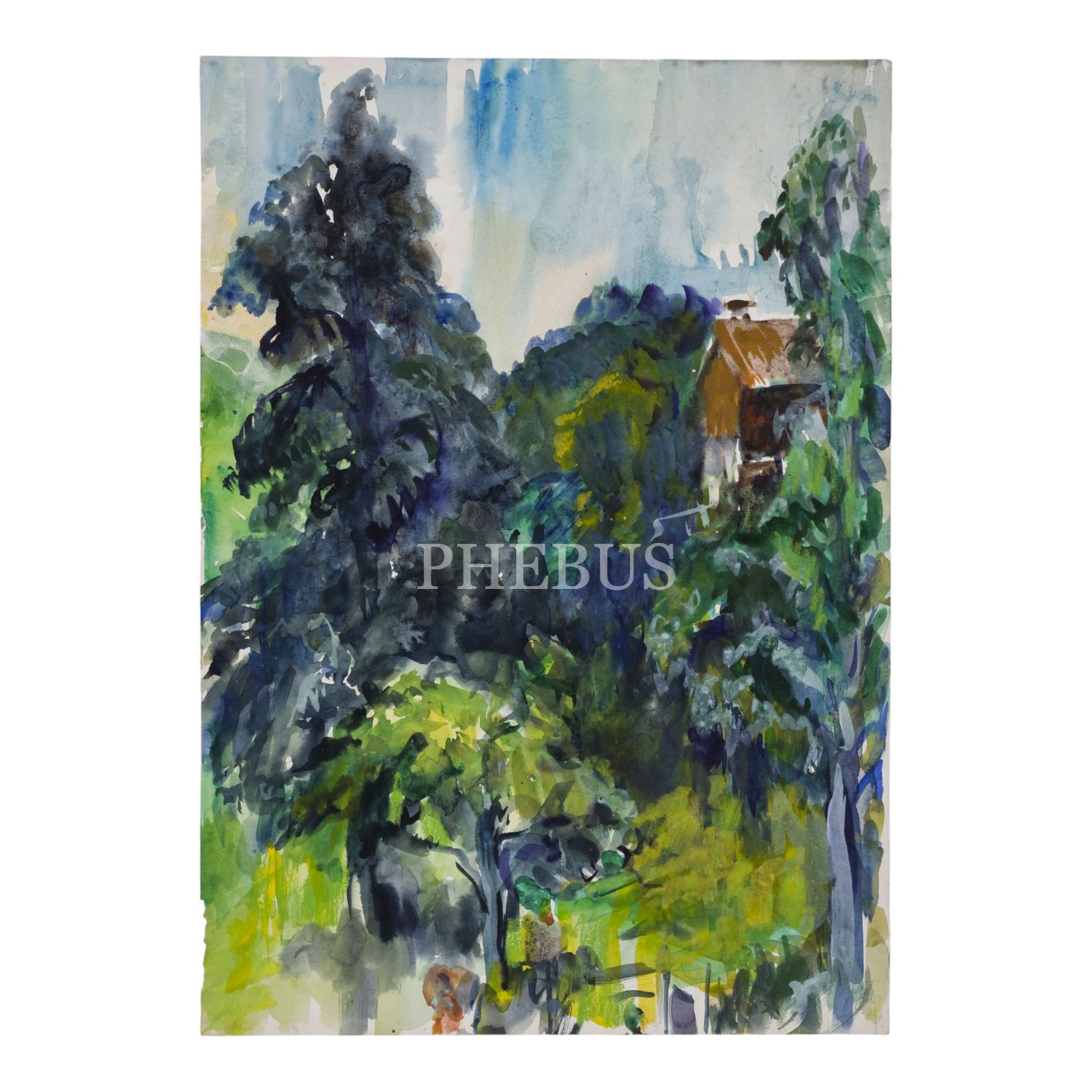 Albert Kley imzalı ve 4 Eylül 1980 tarihli, kâğıt üzerine sulu boya peyzaj, 42x59 cm...