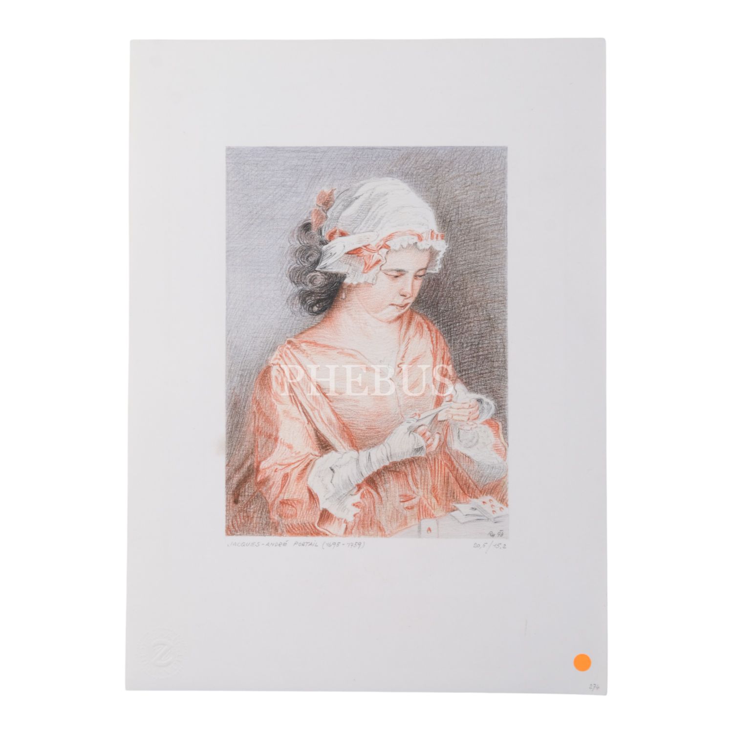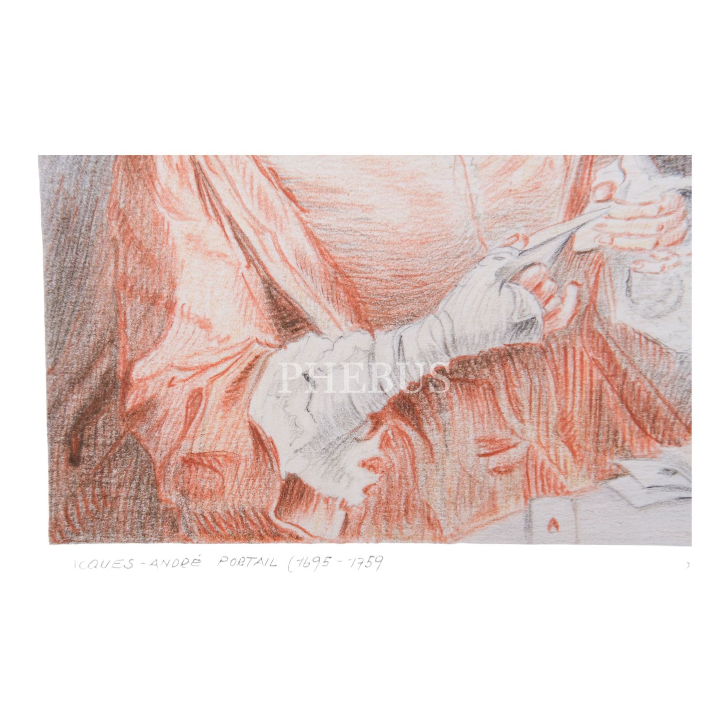 "RH ´93" imzalı, "Jacques-Andre Portail (1695-1759)" başlıklı resim, kâğıt üzerine kuru boya, 22x30 cm...