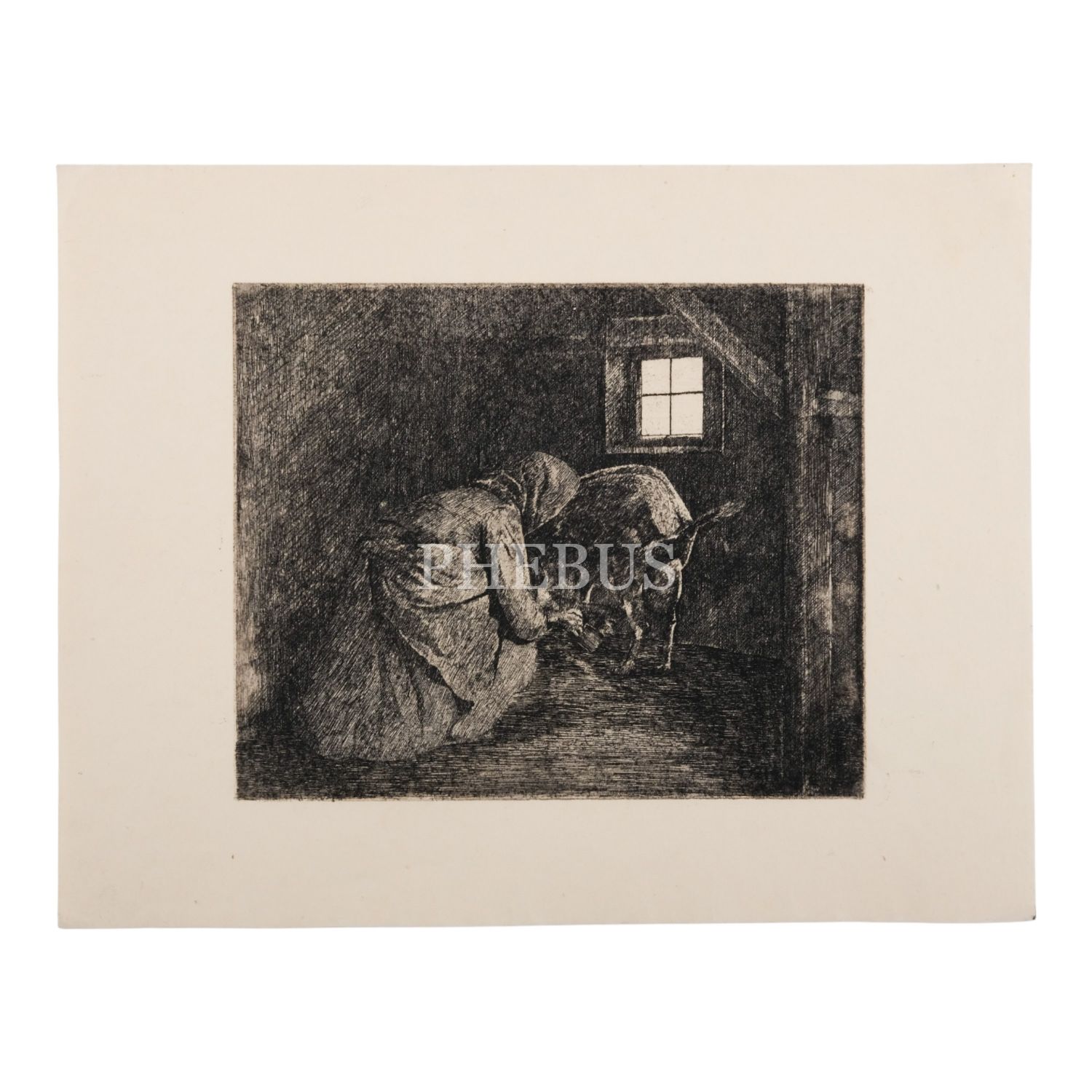 Süt sağan kadın görselli gravür, 30x23 cm...