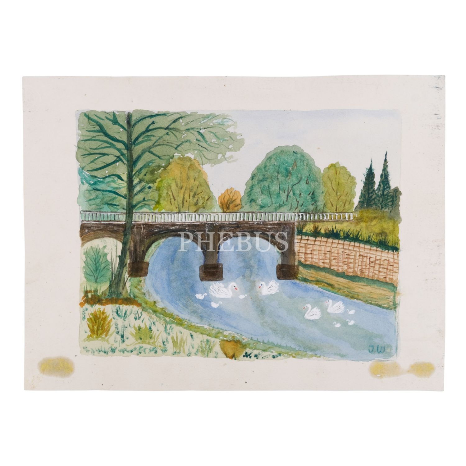 Biri "J. W." imzalı, önlü-arkalı iki adet sulu boya resim, 40x30 cm...