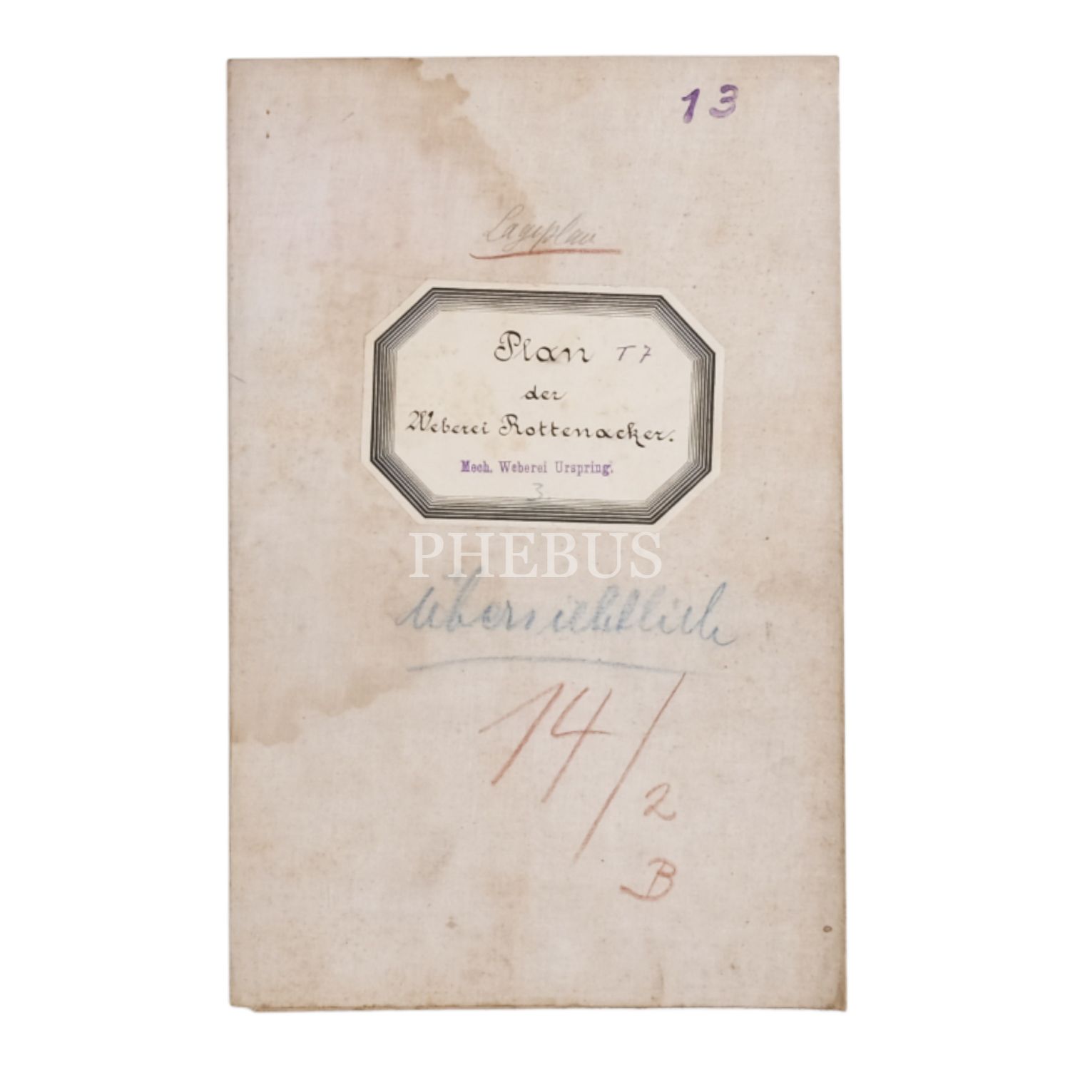 Rottenacker Dokuma Fabrikasının (Almanya) el çizimi planı, "Plan der Weberei Rottenacker", 1894 tarihli, açık halde 82x56 cm...