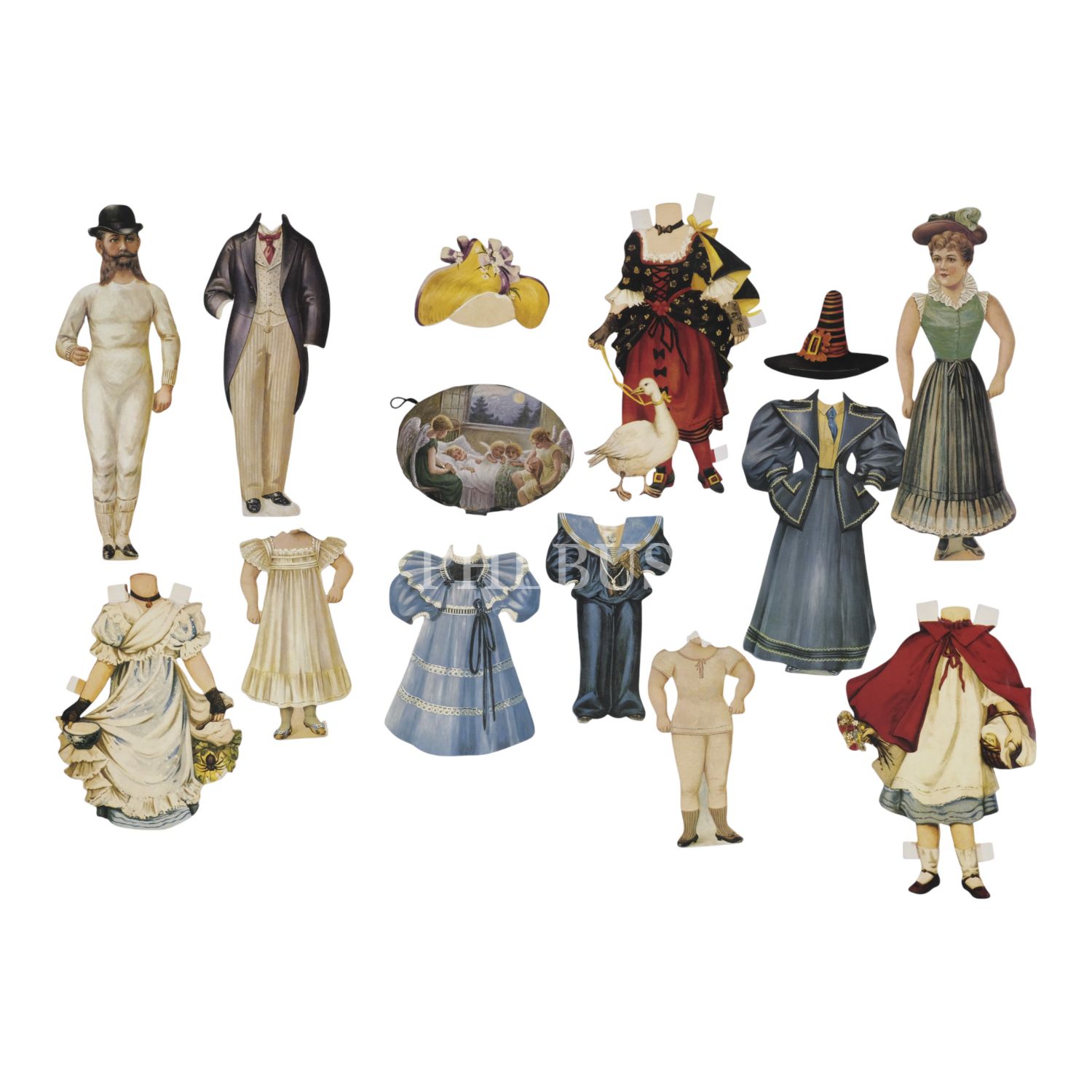 20. yüzyıl başlarından, 13 parçalık kıyafet değişim oyunu, ortalama 12x17 cm...
