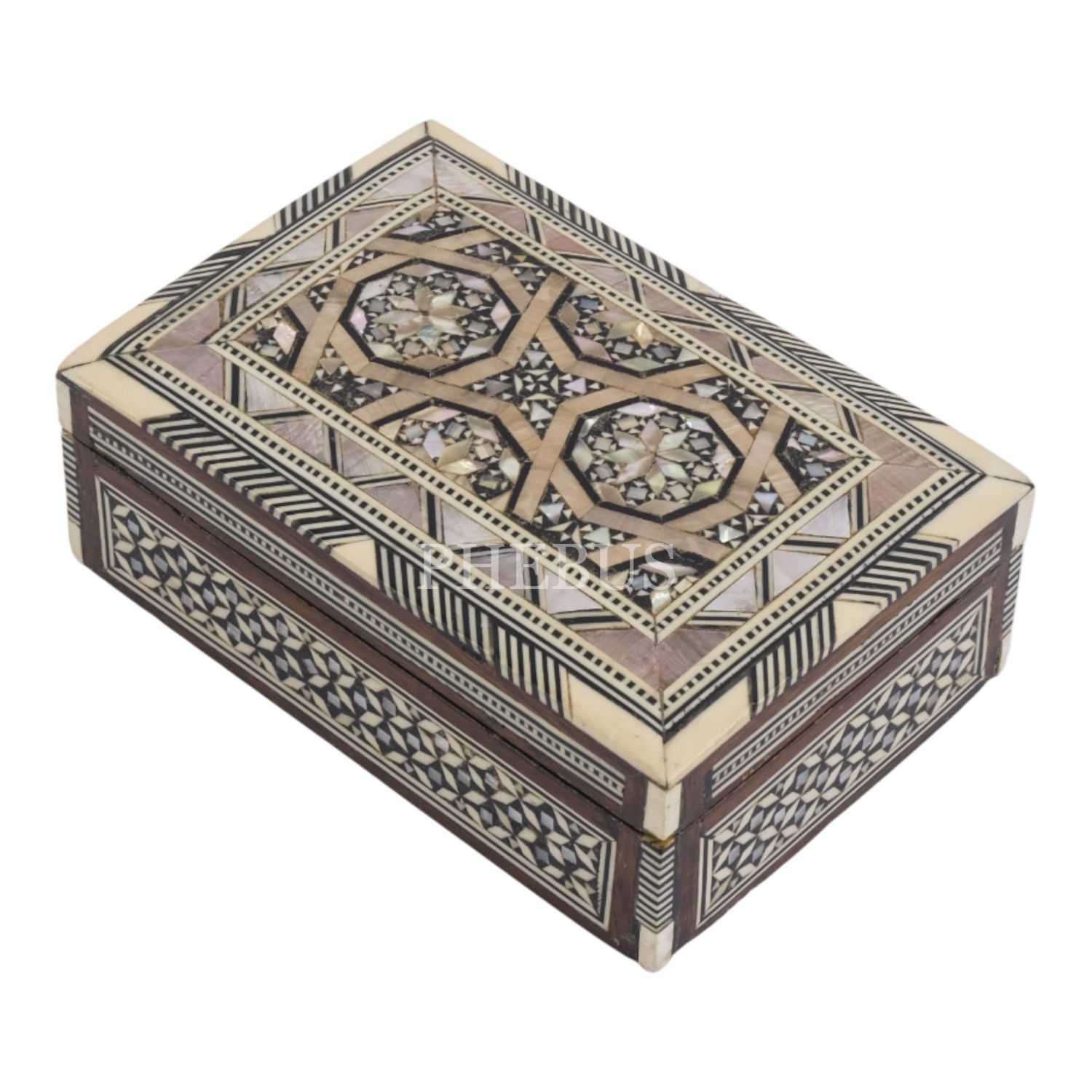 Sedef işçilikli ahşap kutu, içi kadife kaplı, 12x8,5x4,5 cm...