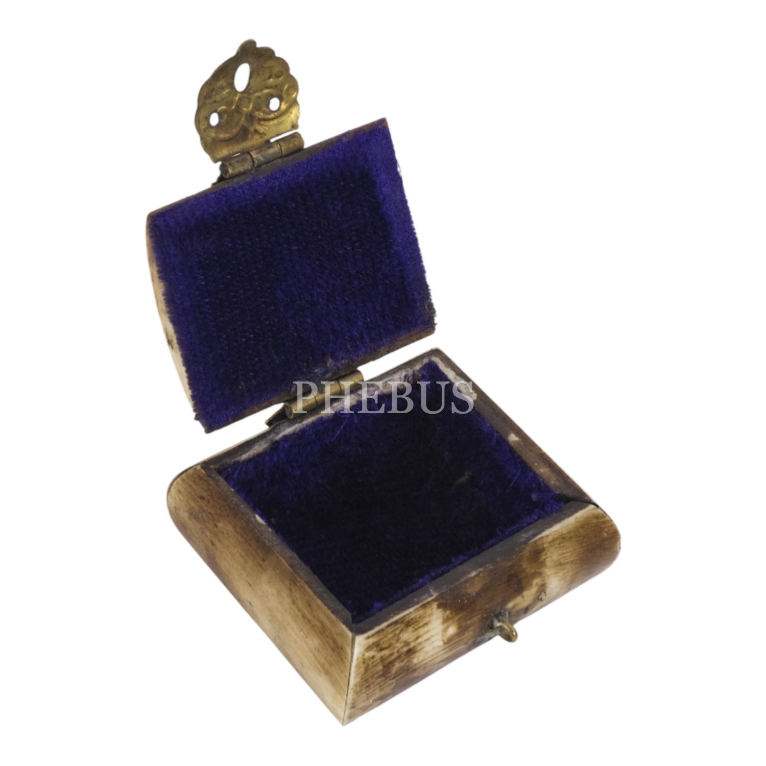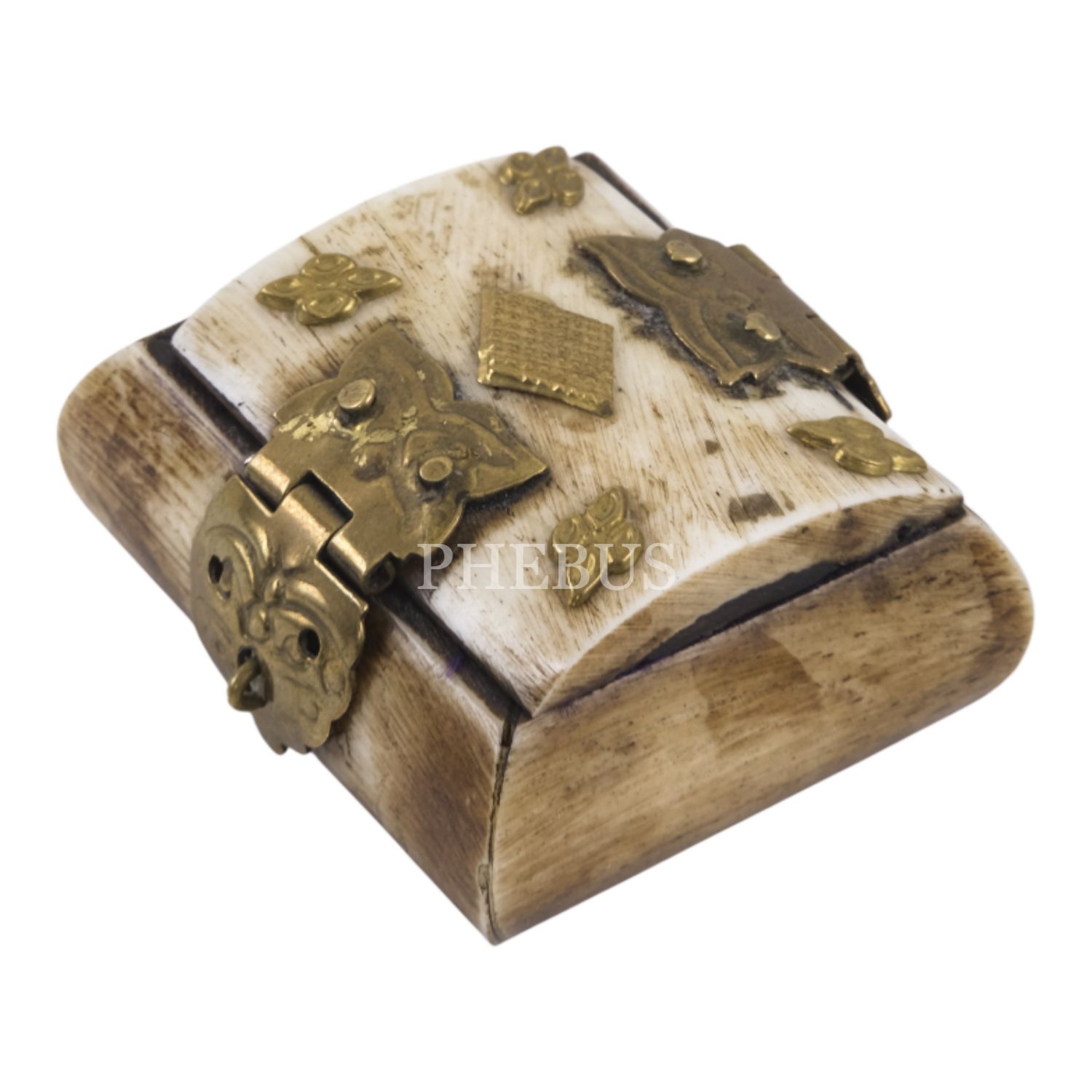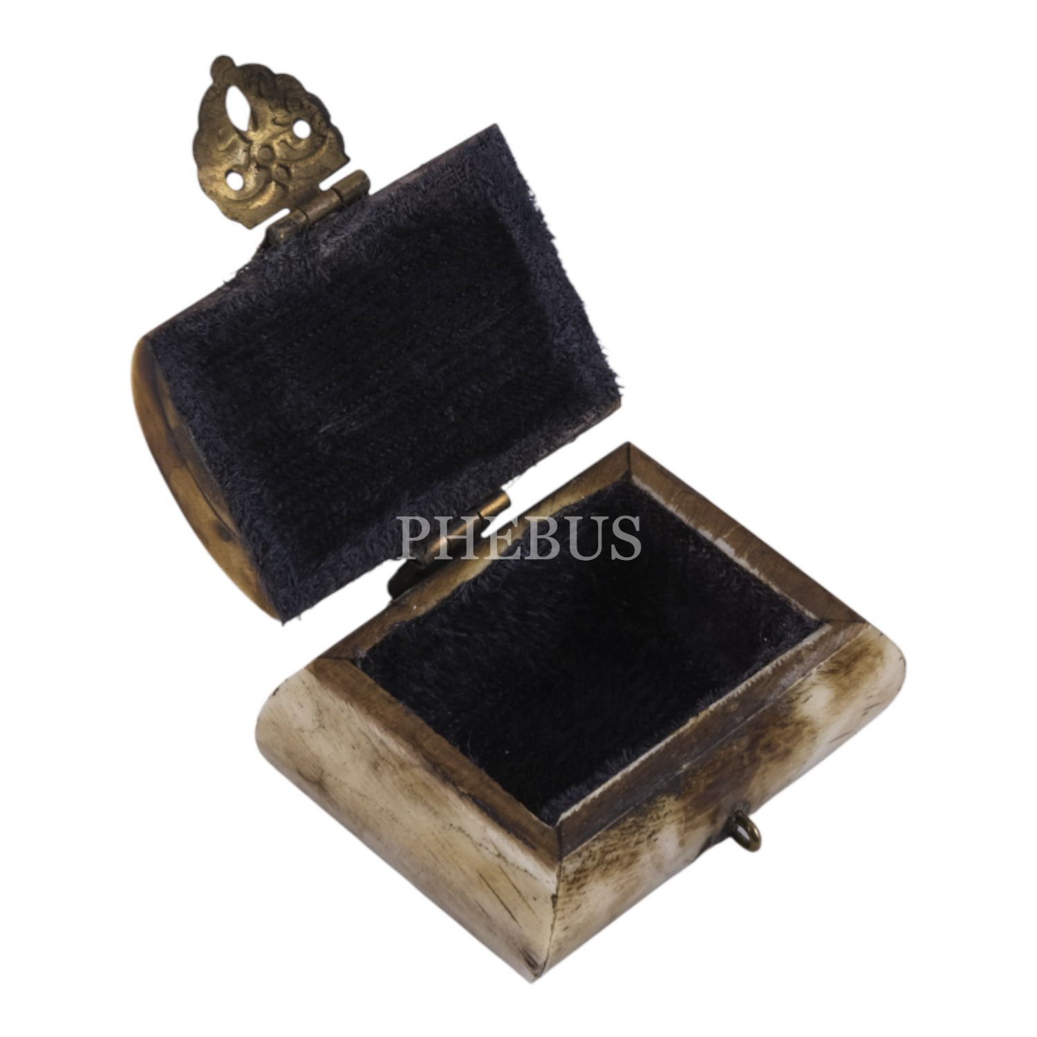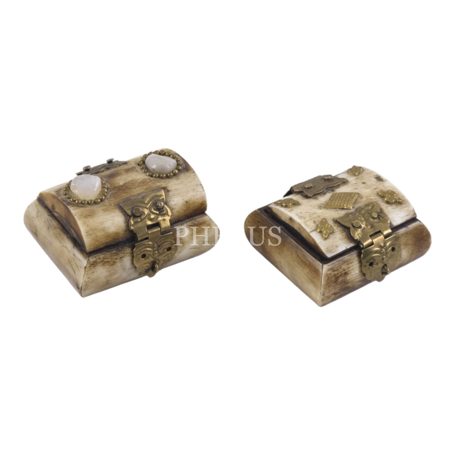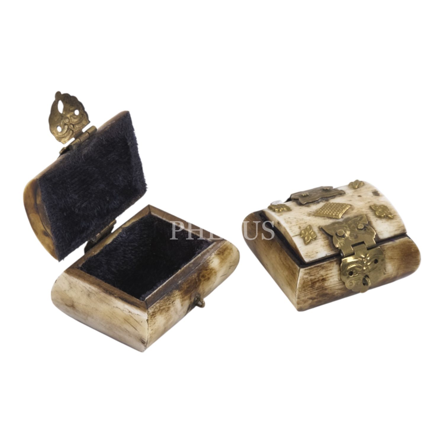 Kemikten mamul iki adet minyatür takı kutusu, her ikisi de kilit mekanizmalı, içleri kumaş kaplı, 5x4,5x3 cm...