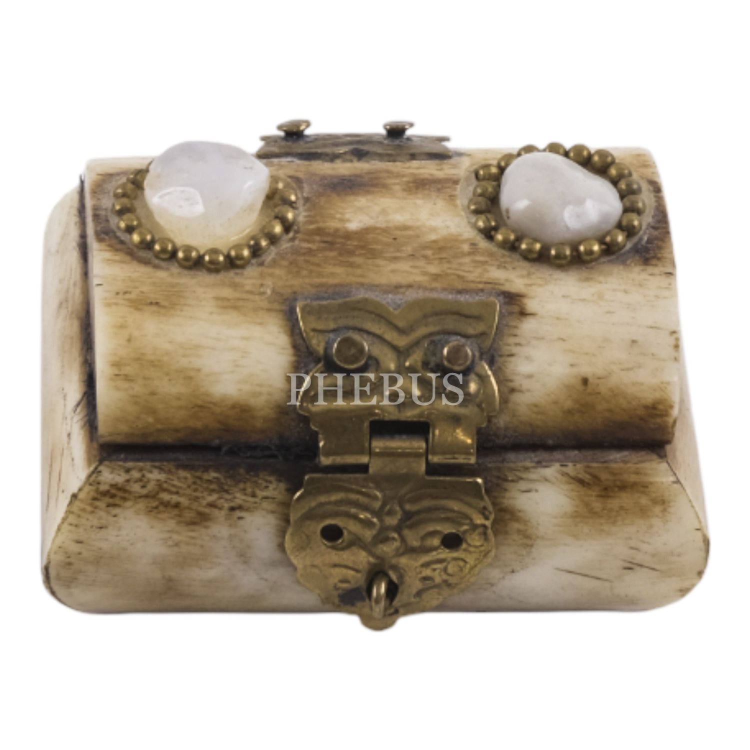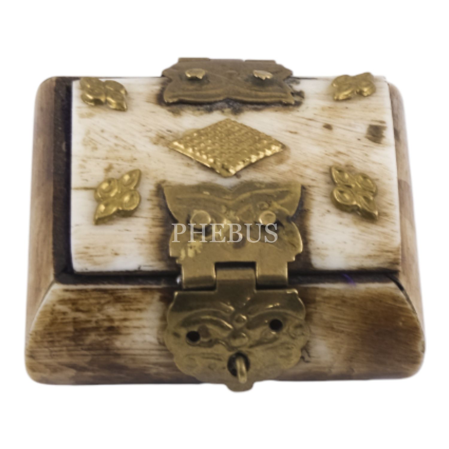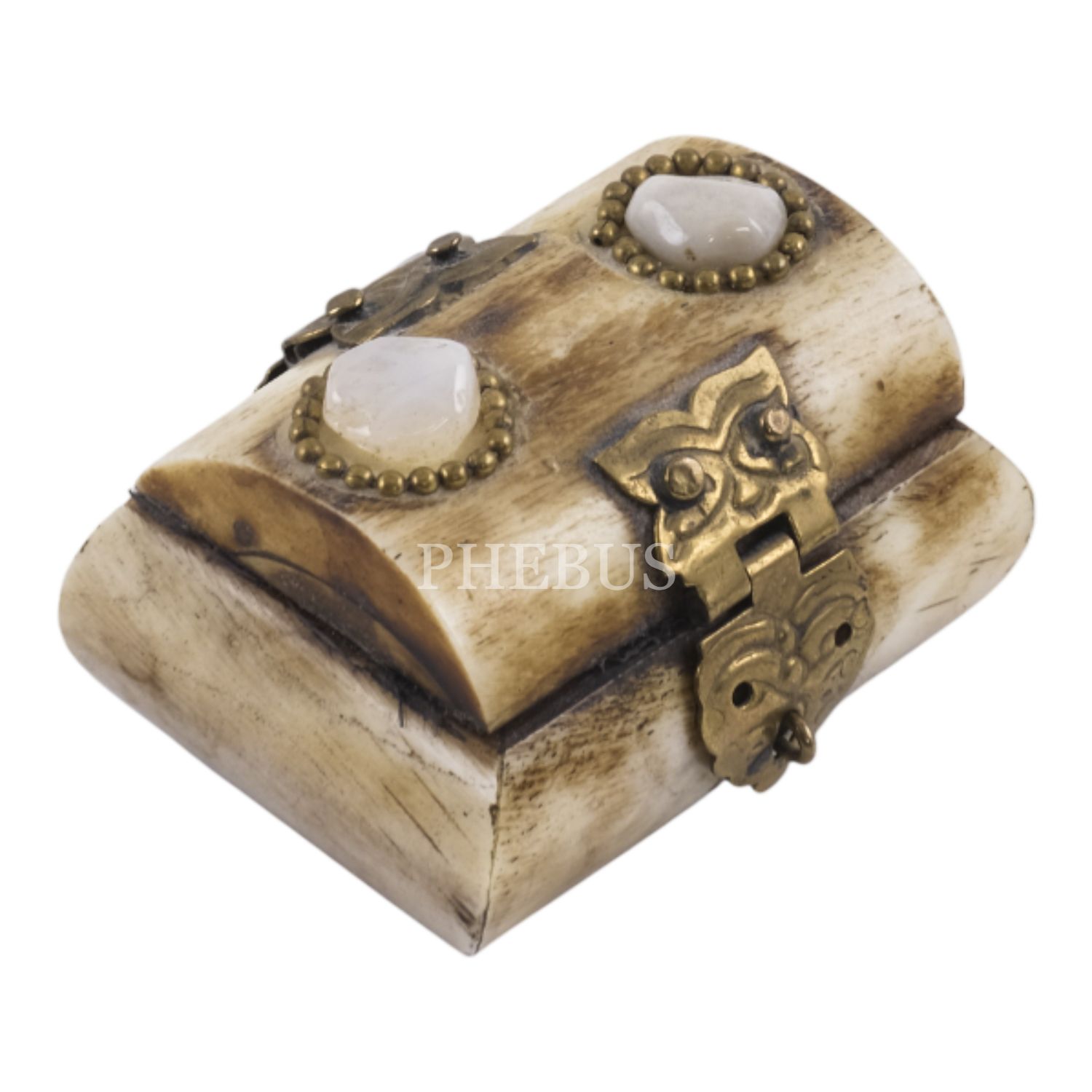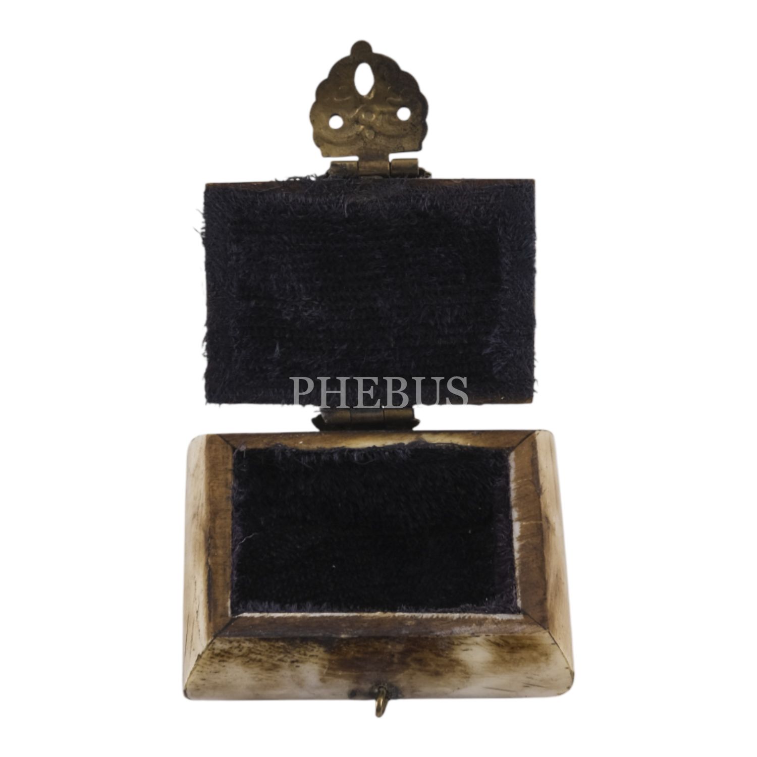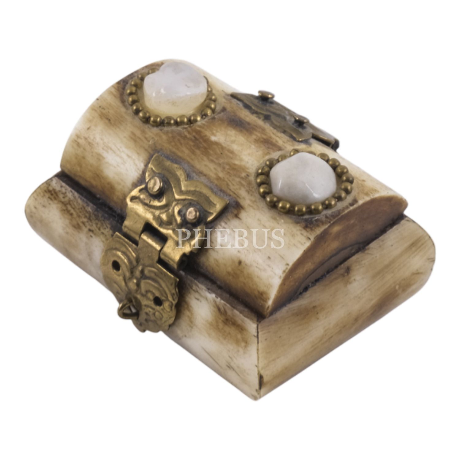 Kemikten mamul iki adet minyatür takı kutusu, her ikisi de kilit mekanizmalı, içleri kumaş kaplı, 5x4,5x3 cm...