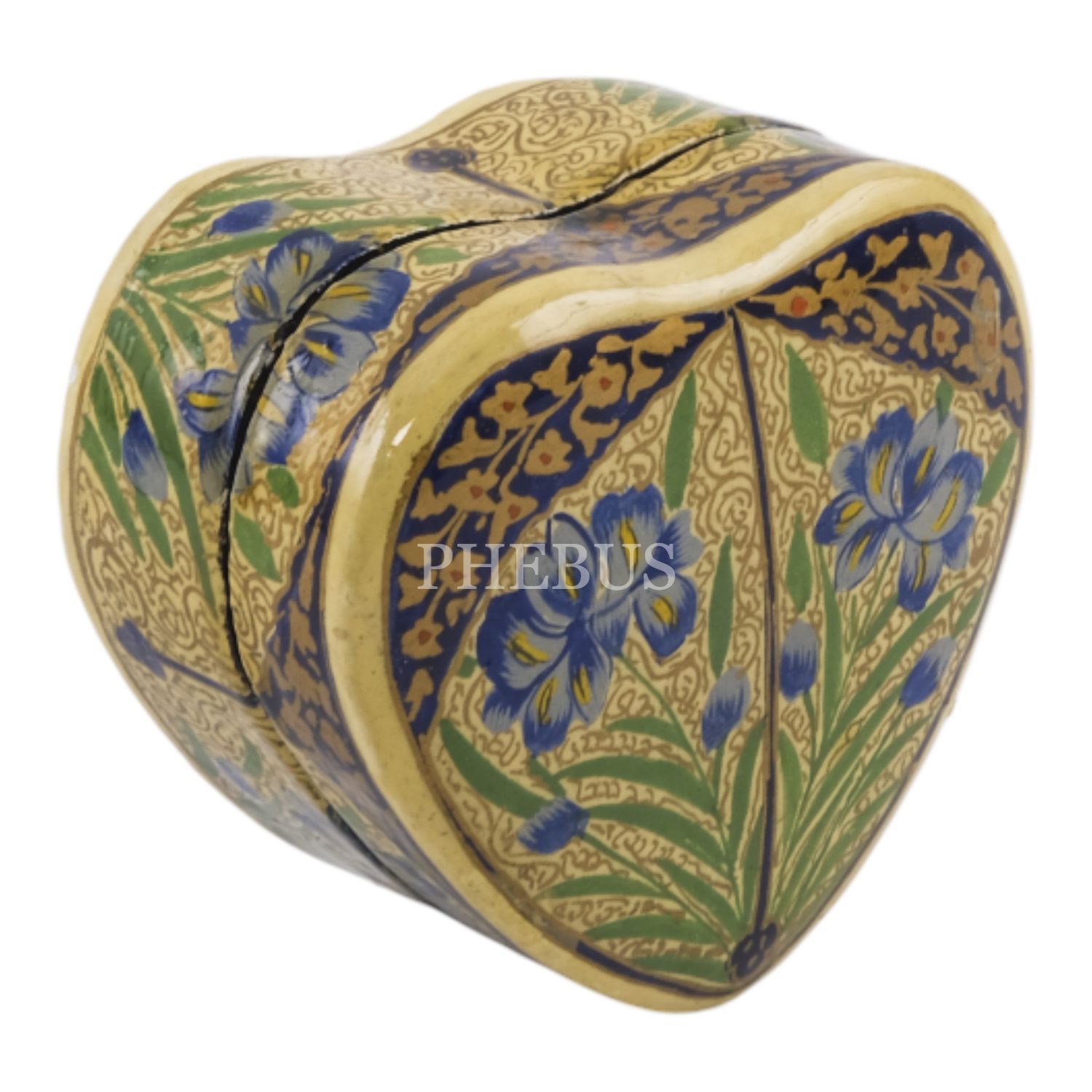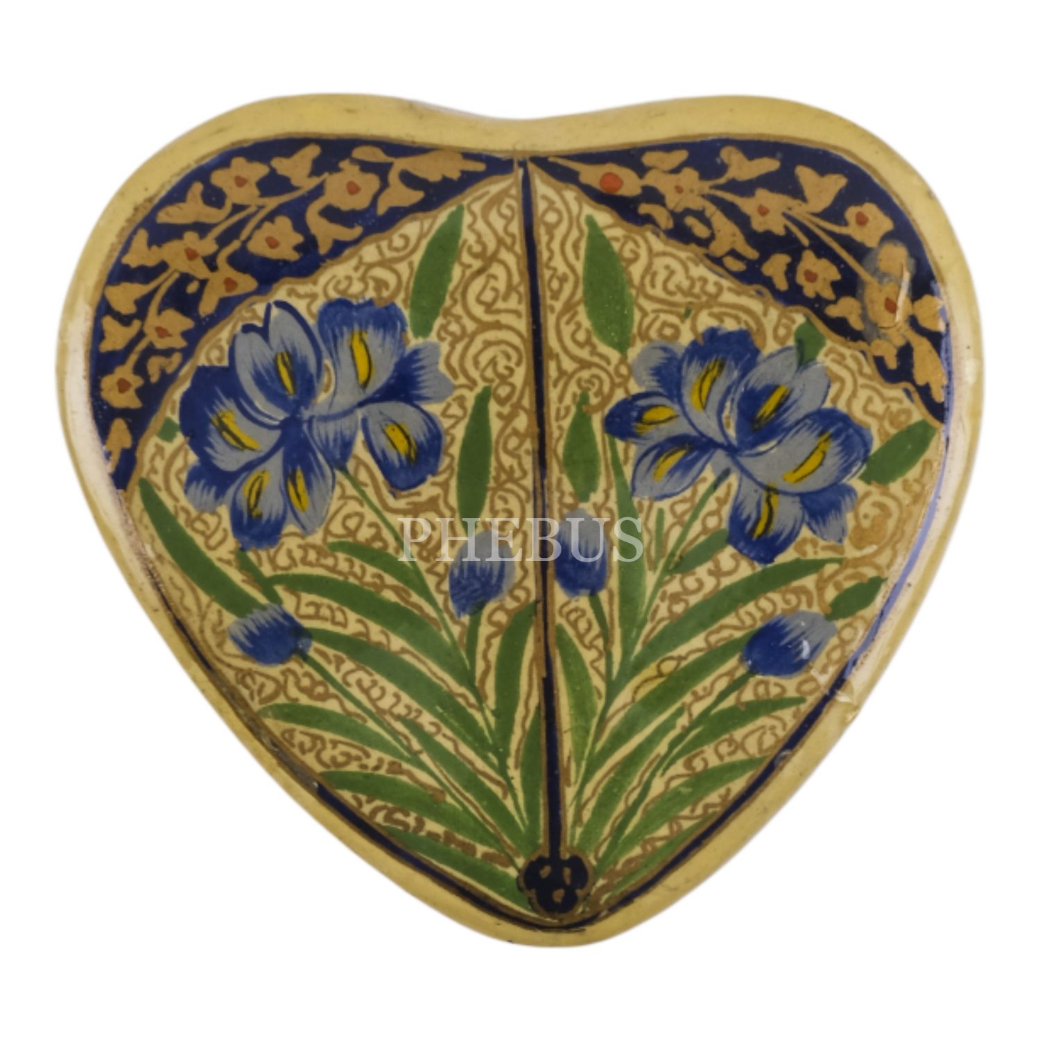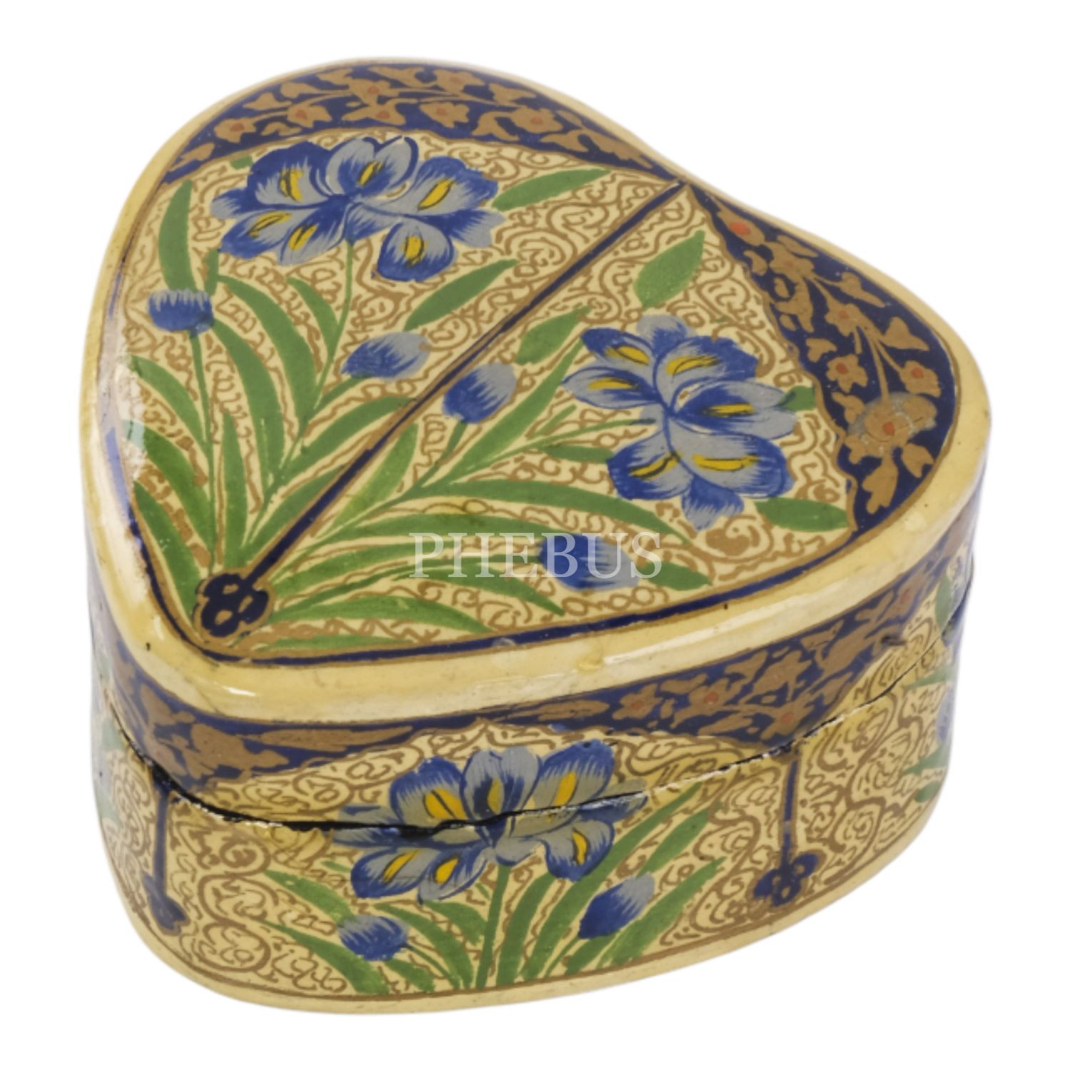 El boyama floral desenlerle bezeli, kalp formunda takı kutusu, 6,5x6x3,5 cm...