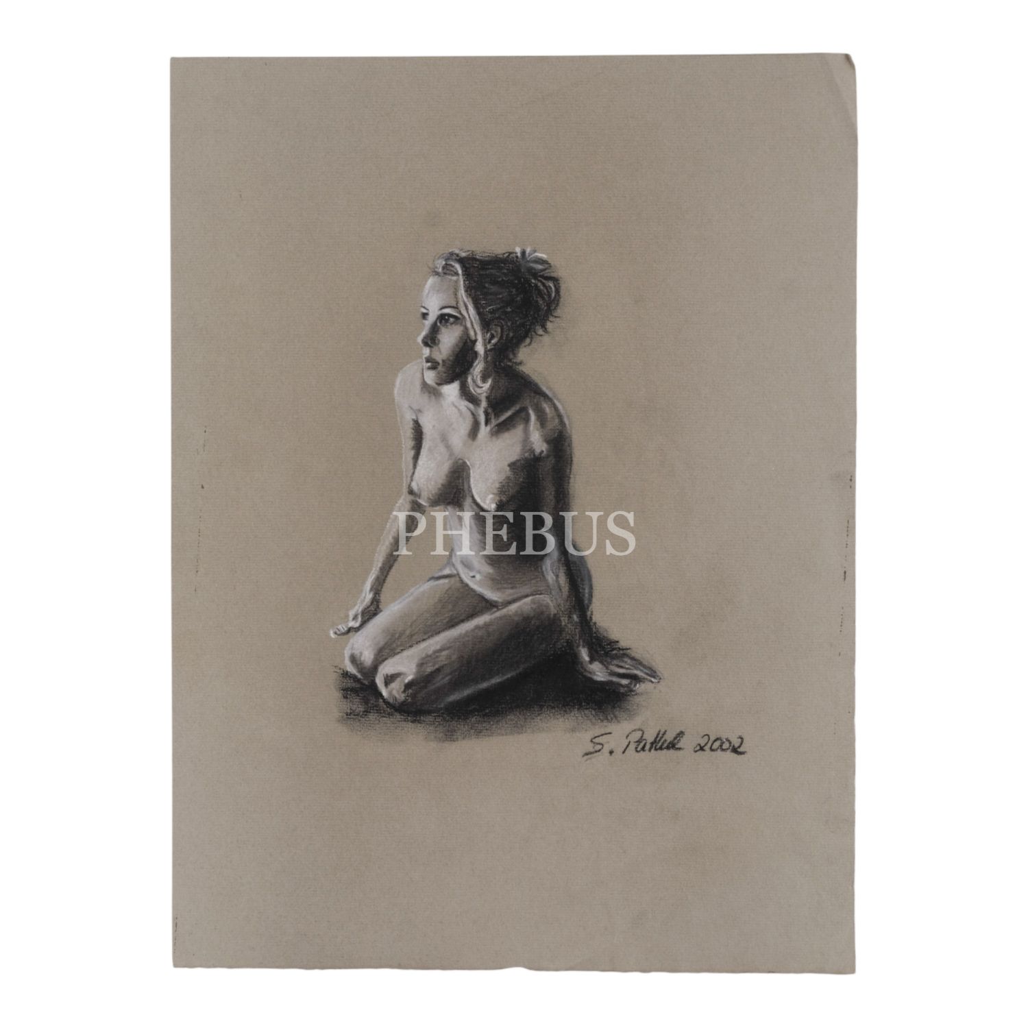 Sanatçı imzalı ve 2002 tarihli nü resim, kâğıt üzerine kara kalem, 30x40 cm...