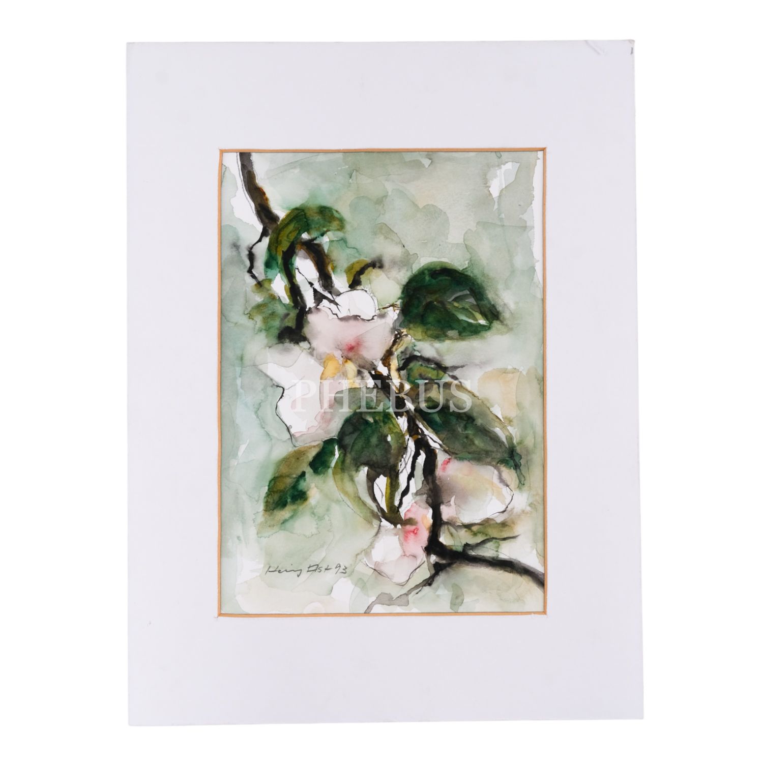 Sanatçı imzalı ve 1993 tarihli, kâğıt üzerine sulu boya natürmort, paspartulu, resim 21x29 cm, paspartu 30x40 cm...
