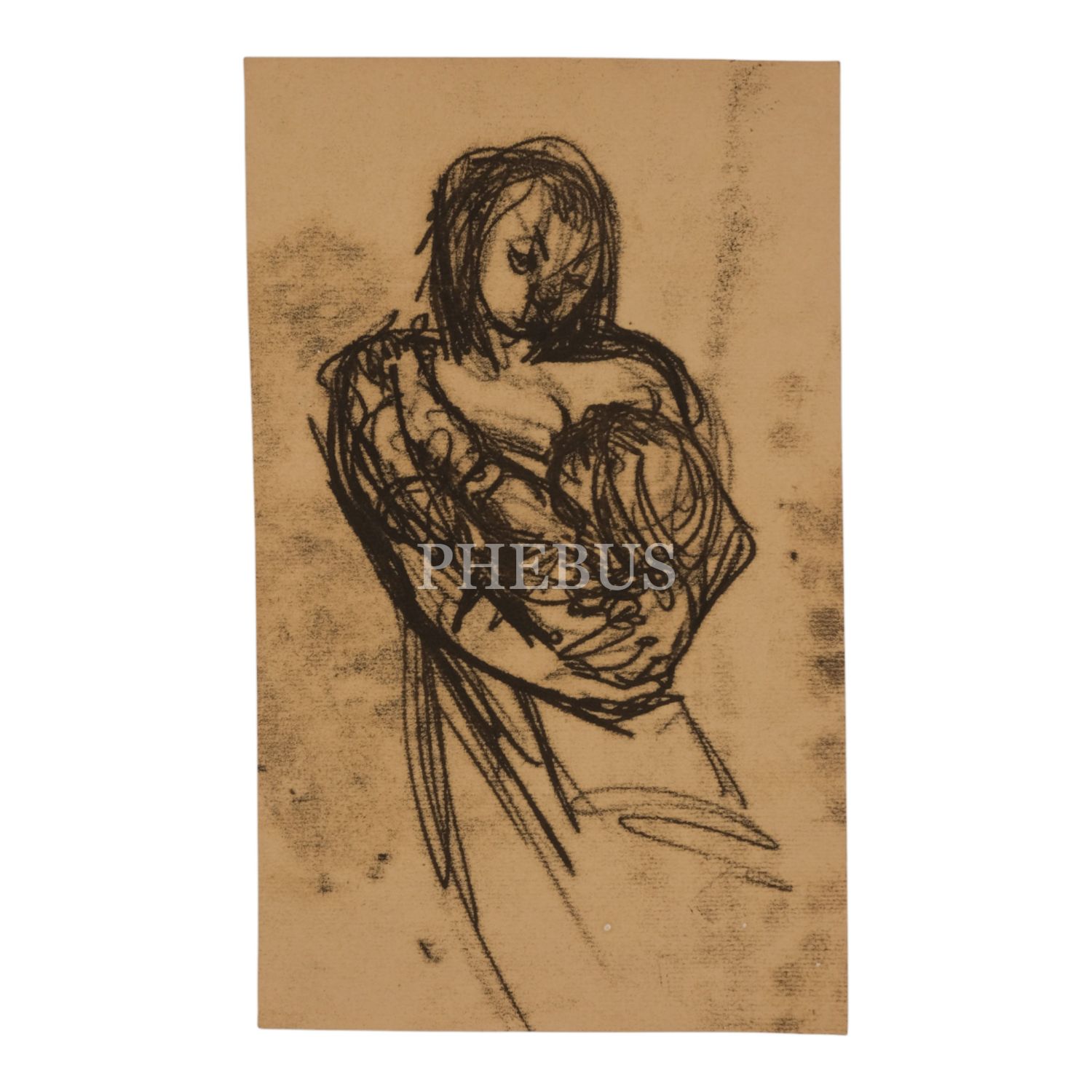 Kâğıt üzerine karakalem eskiz çalışması, imzasız, 17x28 cm...