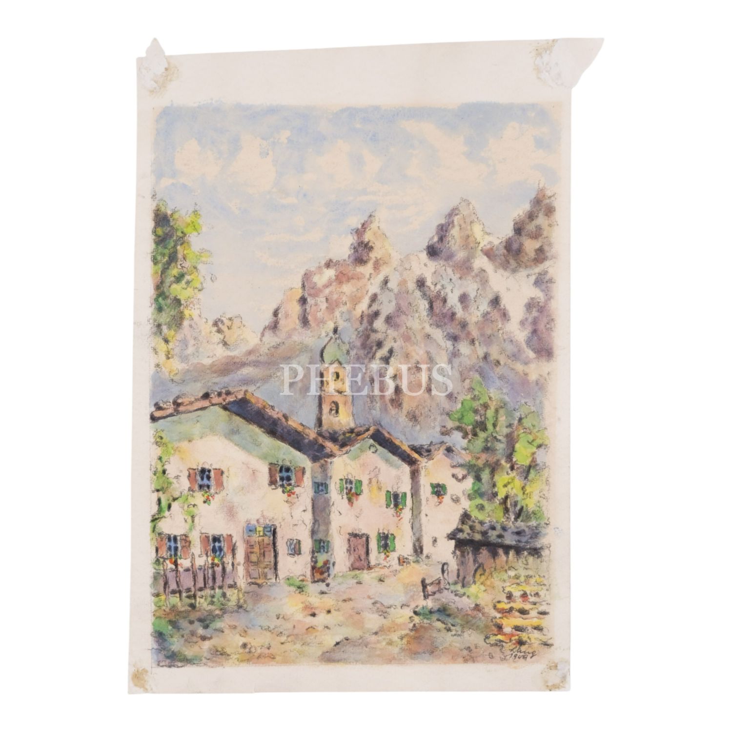 Sanatçı imzalı ve 1940 tarihli, kâğıt üzerine karışık teknik şehir manzarası, 30x42,5 cm...