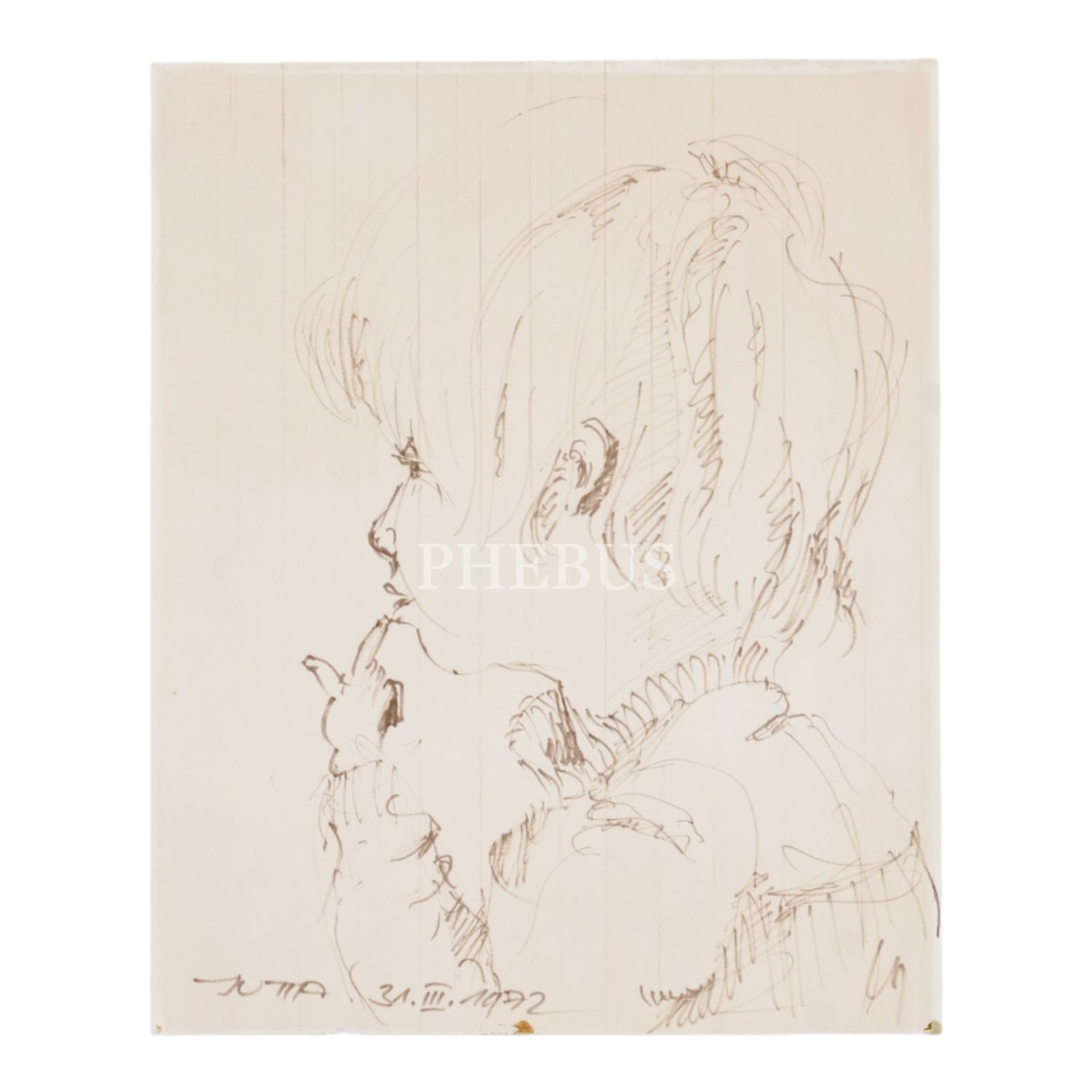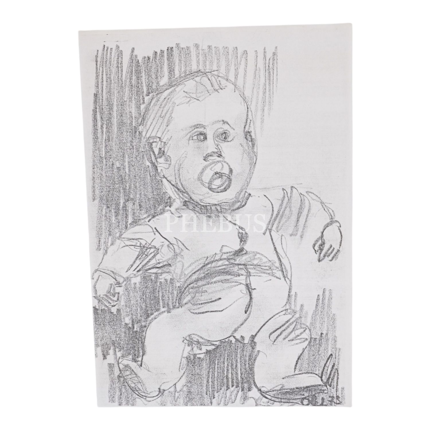 İki adet çocuk portresi eskizi (birinin matbu baskısı mevcut), ikisi de imzalı, biri 1972 tarihli, kâğıt üzerine karakalem, biri 21x30 cm, diğeri 21x26 cm...