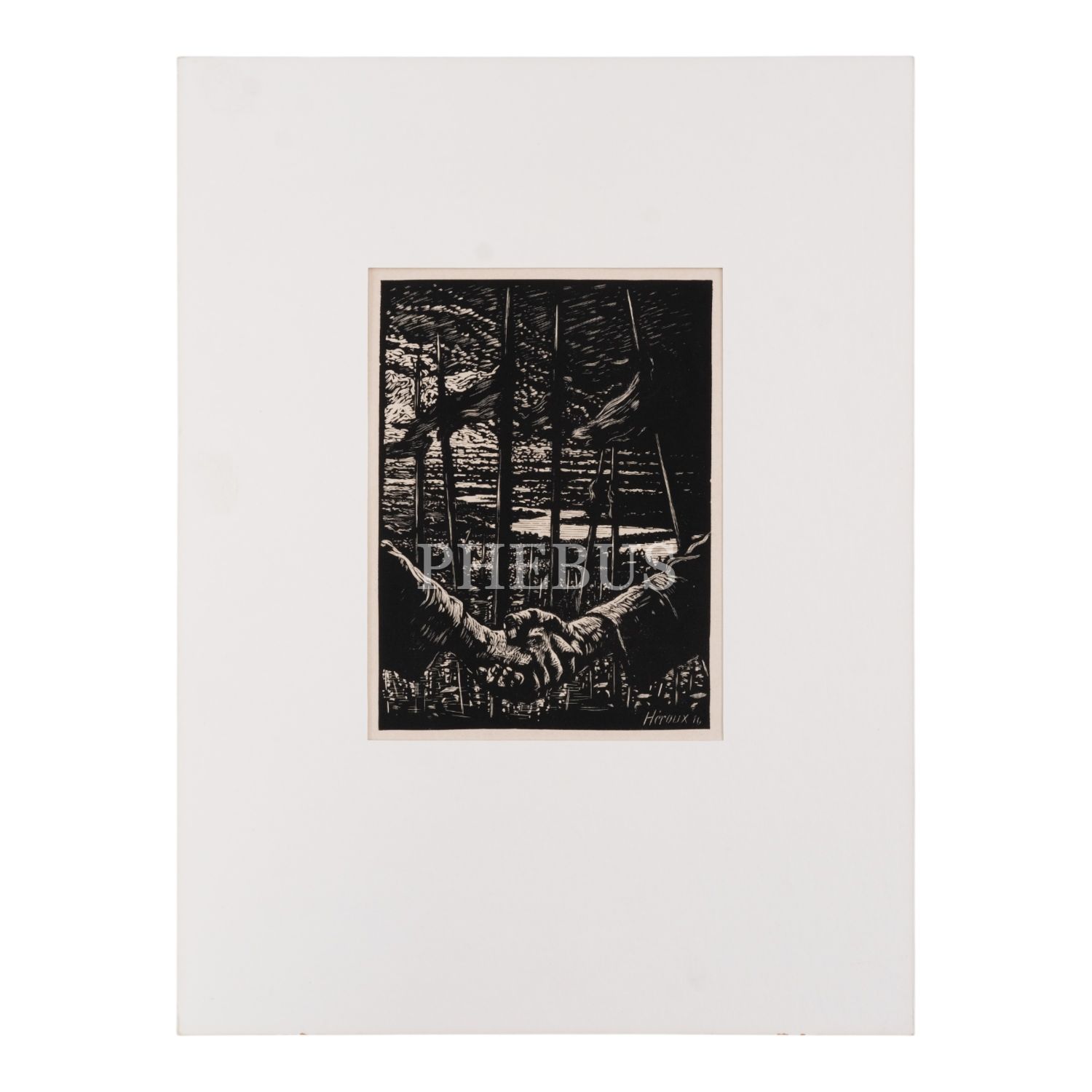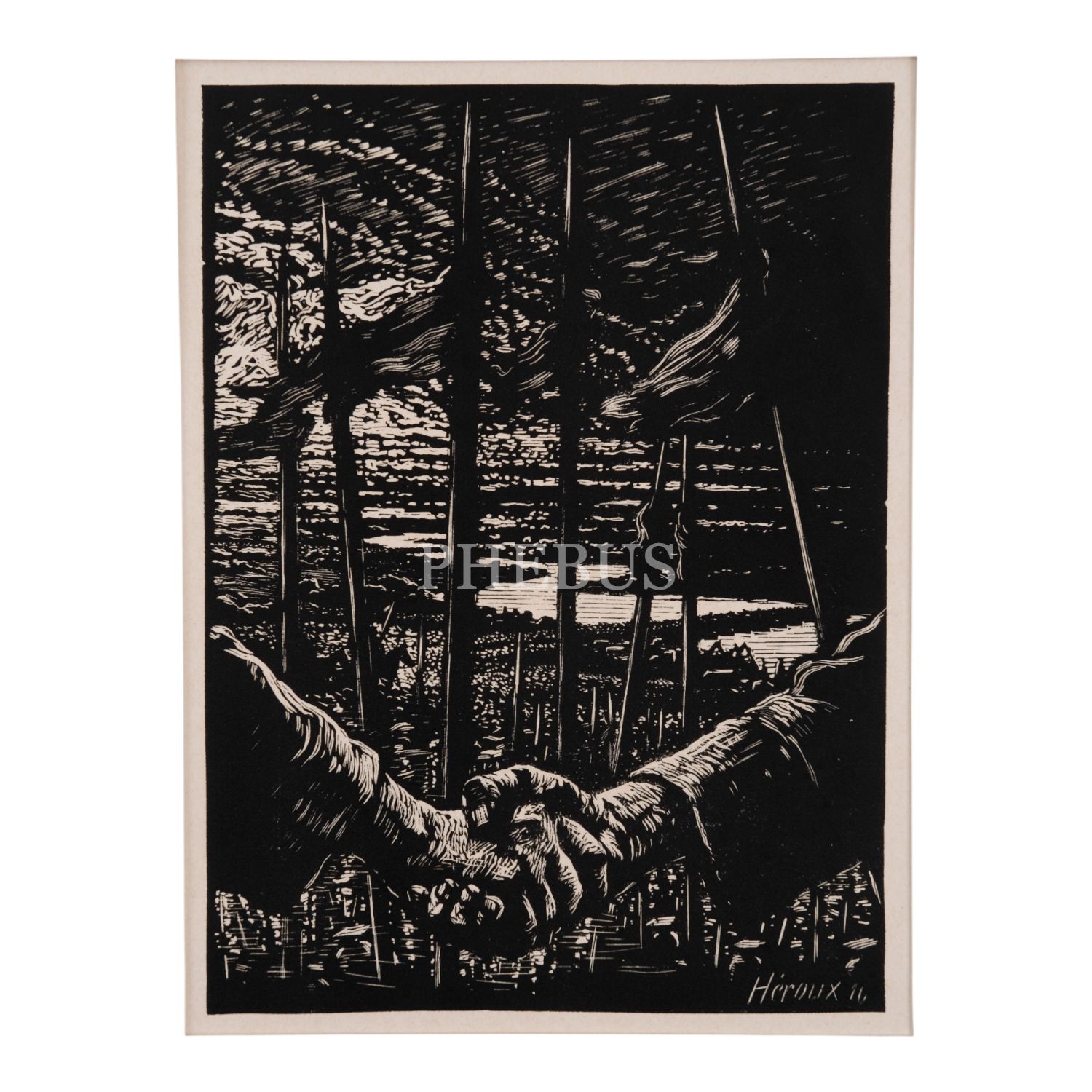 "Bruno Heroux" imzalı gravür, "Hand in Hand (Originalholzschnitt)" ibareli, paspartulu, gravür 16x22 cm, paspartu 30x40 cm...