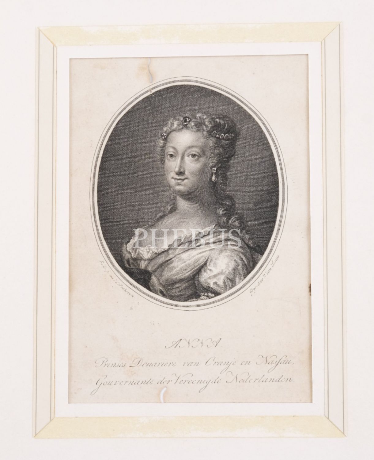 Prenses Anne gravürü, "ANNA. / Prinses Douariere van Oranje en Nassau, / Gouvernante der Vereenigde Nederlanden.", paspartulu, gravür 15x22,5 cm, paspartu 22x32 cm...