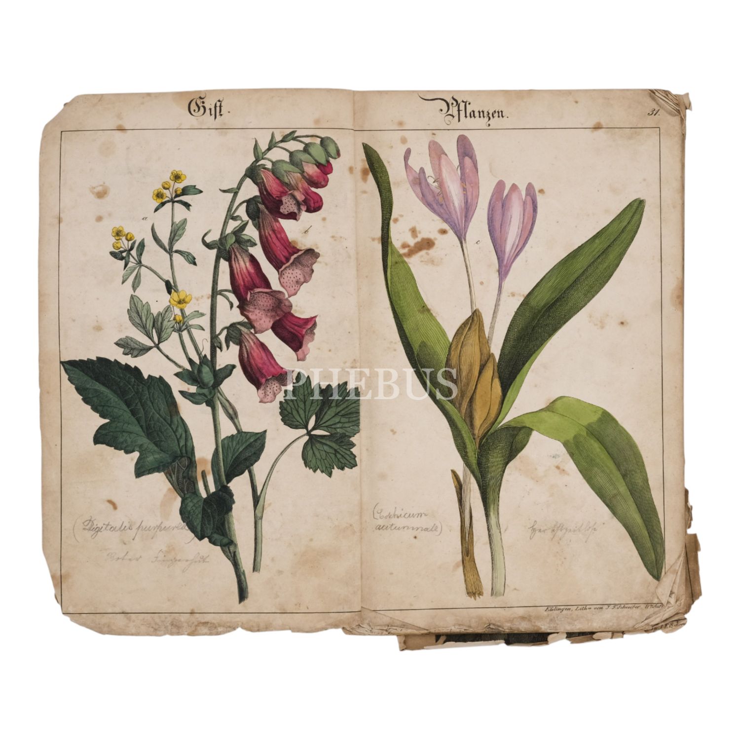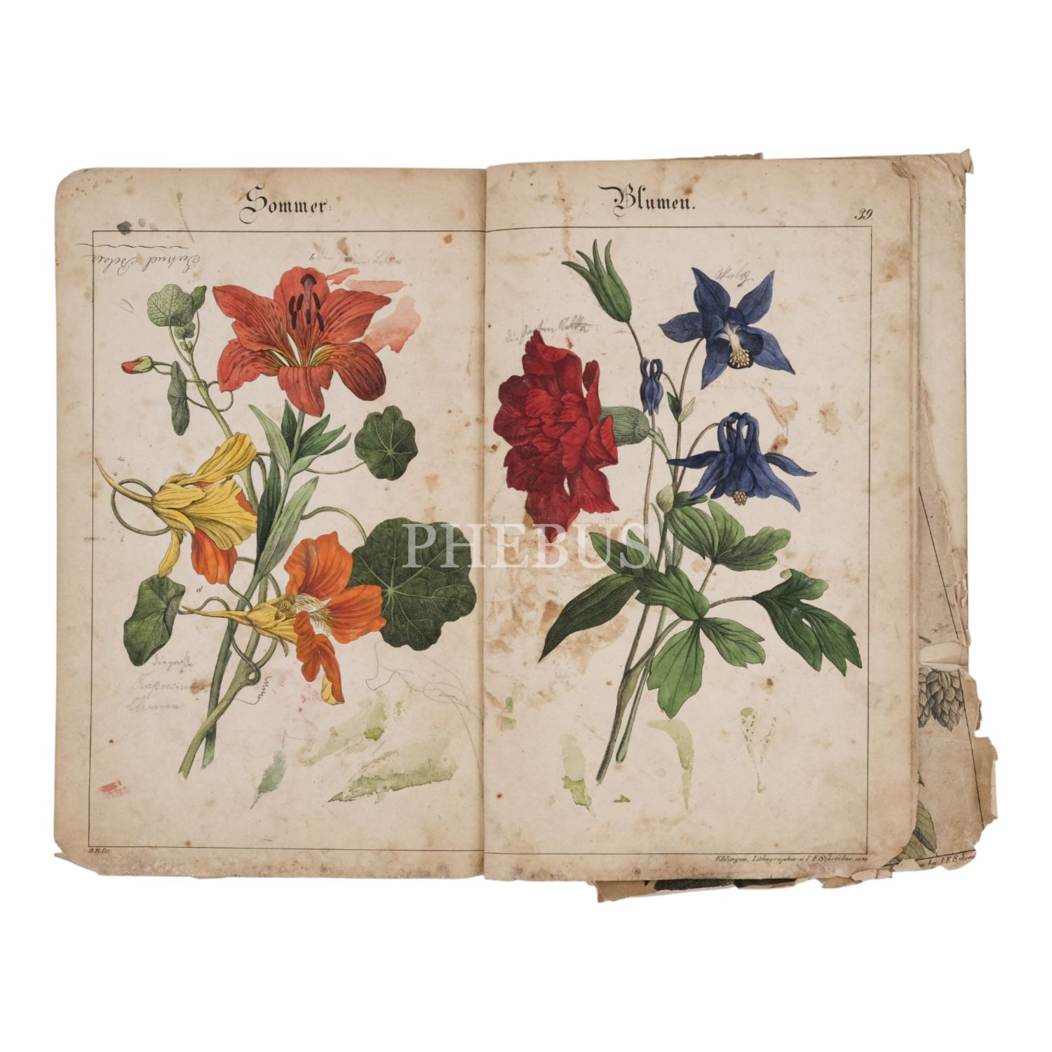 Çeşitli bitkilerin renkli tasvirleriyle dolu Almanca bir kitabın iki ayrı forma halinde günümüze ulaşmış bölümü, 20x31 cm...