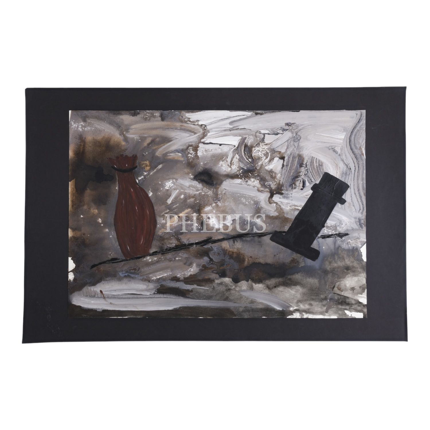 Kâğıt üzerine karışık teknik soyut resim, imzasız, kartona yapışık, resim 72,5x50,5 cm, karton 93x62 cm...