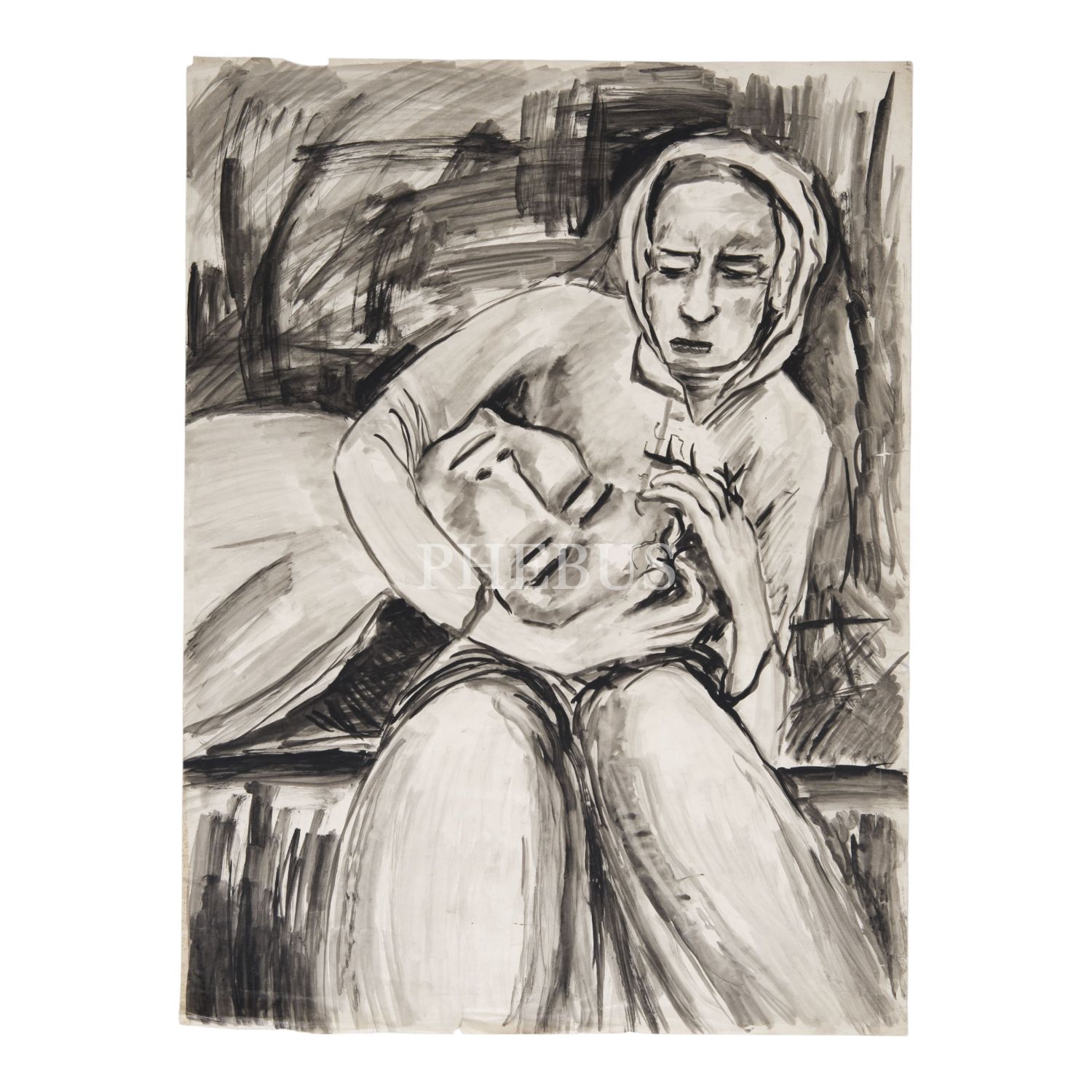 Yas tutan kadın konulu bir resmin baskısı, 50x67 cm...