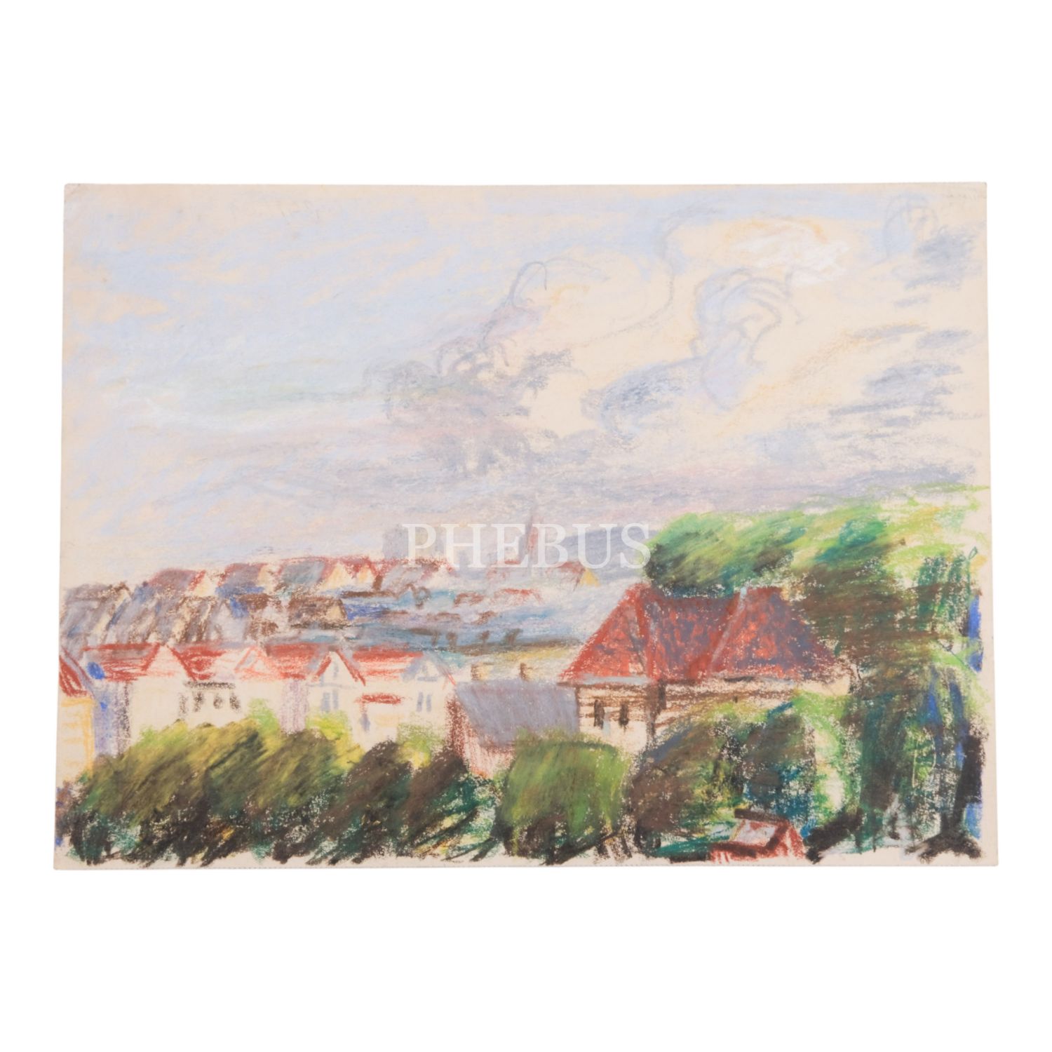 Ressam Albert Kley´den damgalı, kâğıt üzerine pastel boya kasaba resmi, 33x24 cm...