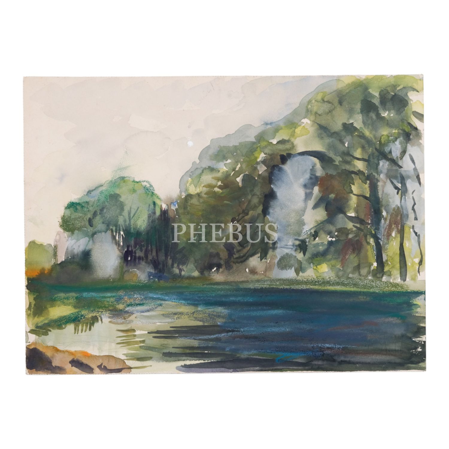 Ressam Albert Kley´den damgalı, kâğıt üzerine sulu boya peyzaj, 36x27 cm...