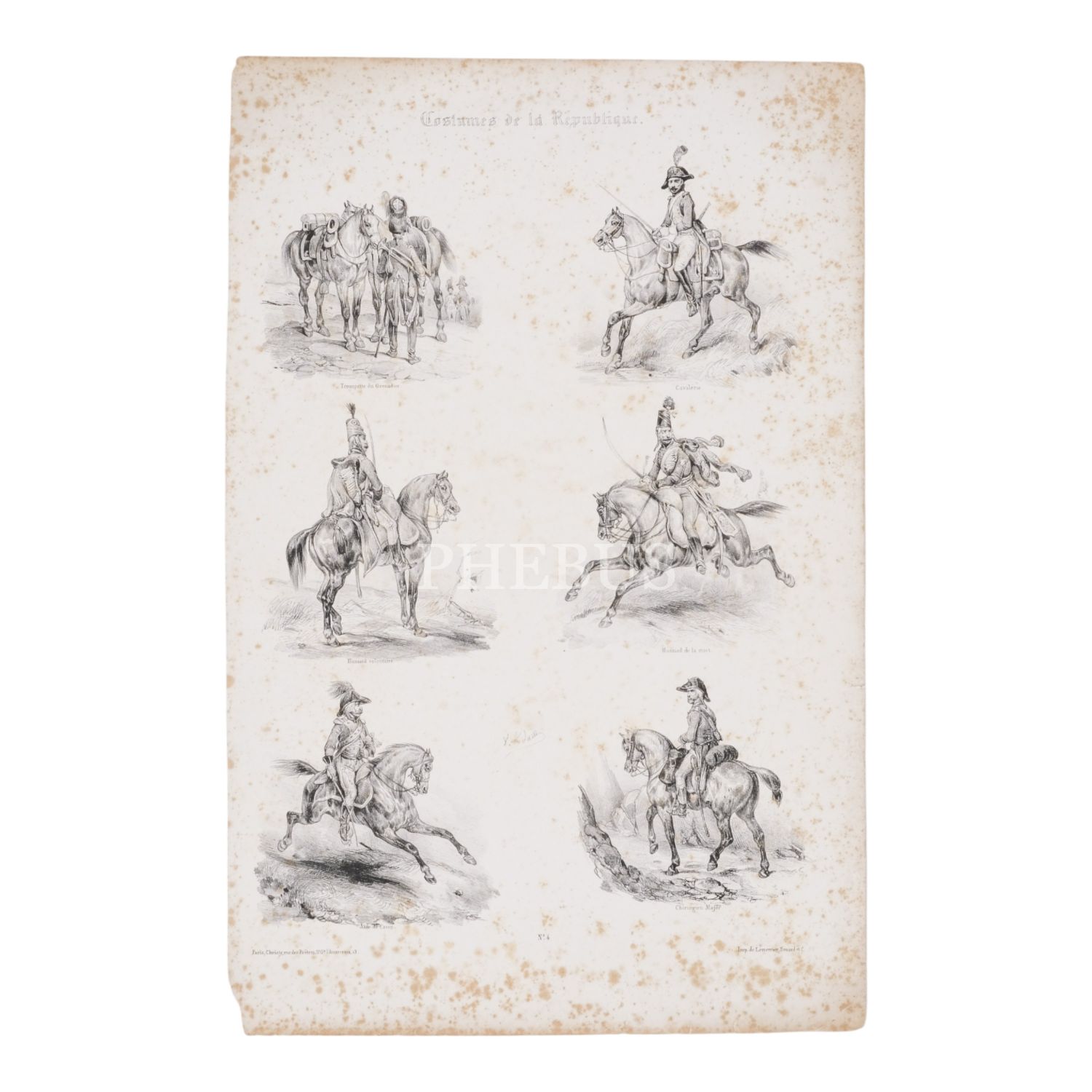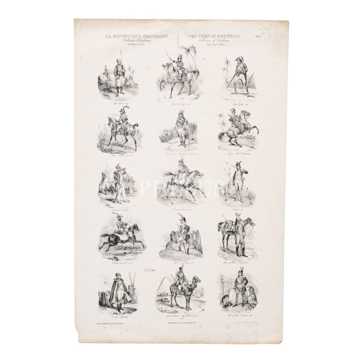 Fransız Ordusu´nun üniforma tasarımlarının görüldüğü V. Adam tarafından çizilen 2 adet gravür, 30x46 cm...