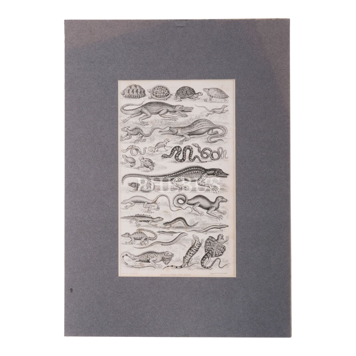 J. Scott tarafından çizilen ve Blackie & Son Glasgow tarafından basılan sürüngenlerin resmedildiği gravür, paspartusuyla birlikte 27x38 cm...