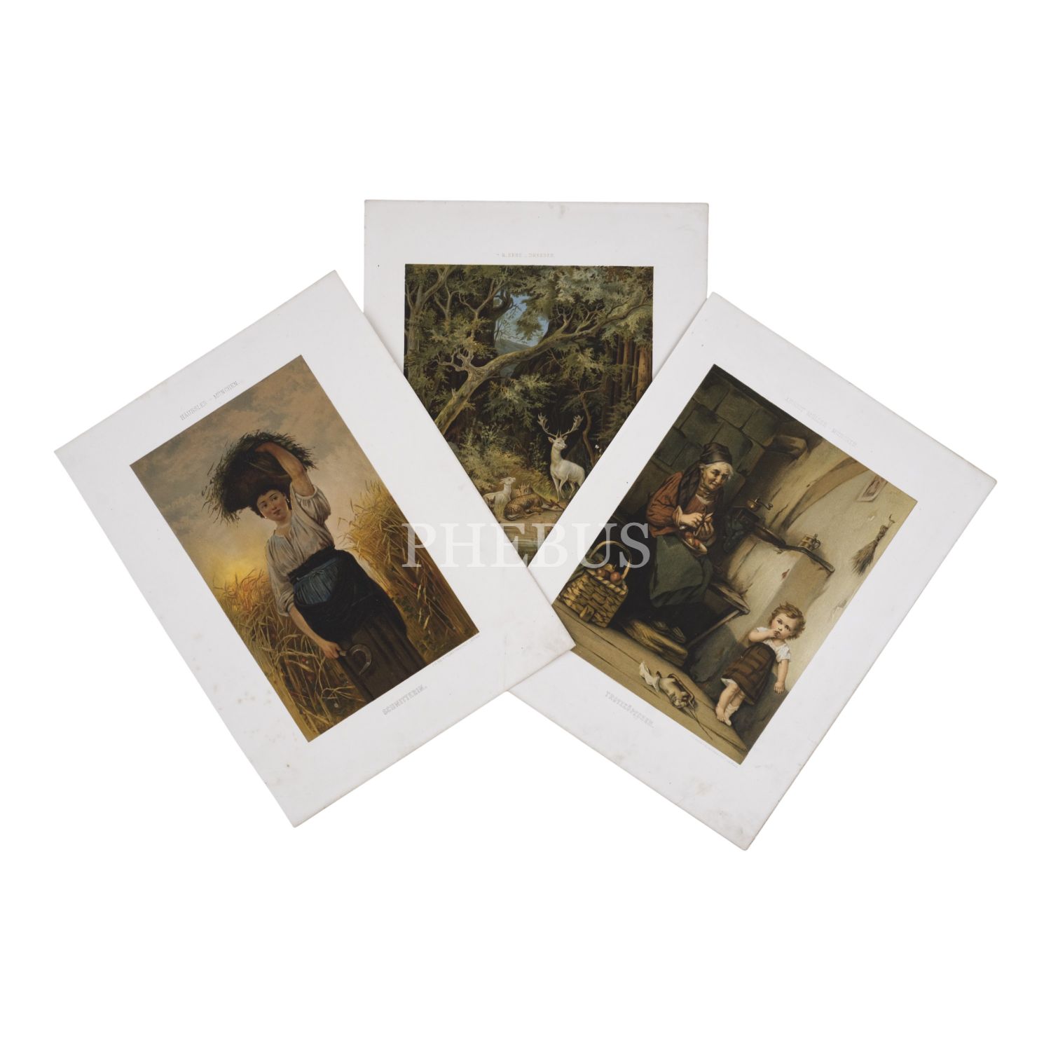 J. G. Bach tarafından çizilen üç adet renkli gravür, 33x25 cm...