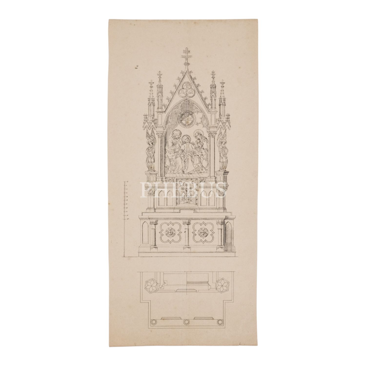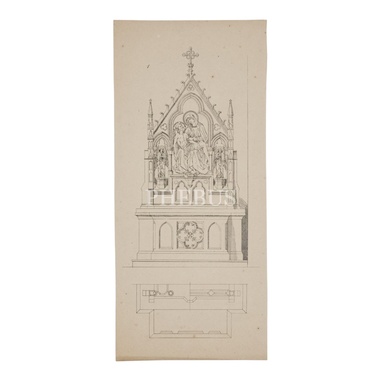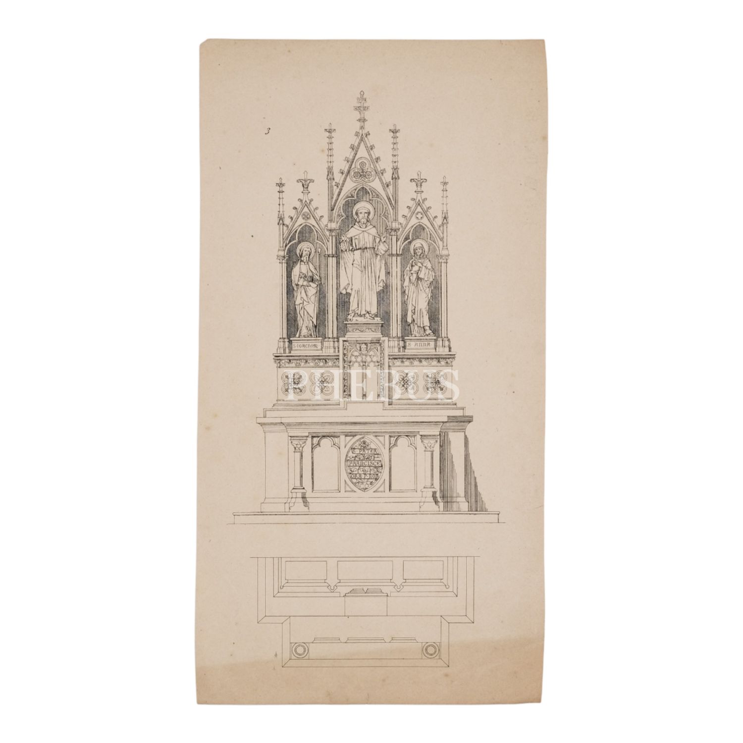 Kilise tasarımı ve Hristiyanlık temalı çizimlerin yer aldığı 4 sayfa, 17x39 cm...