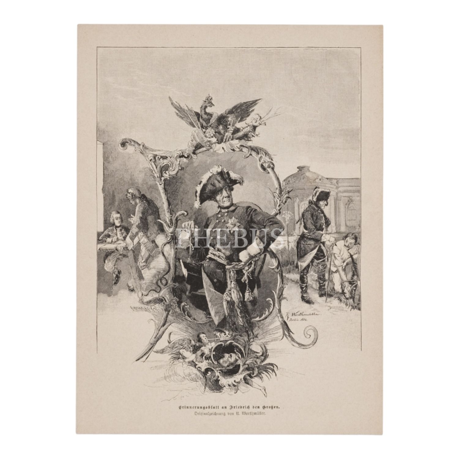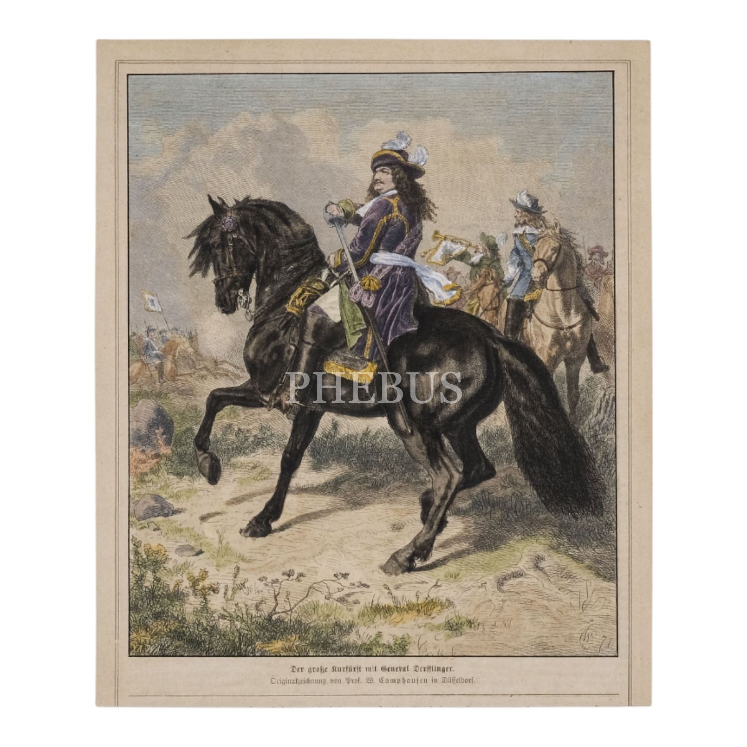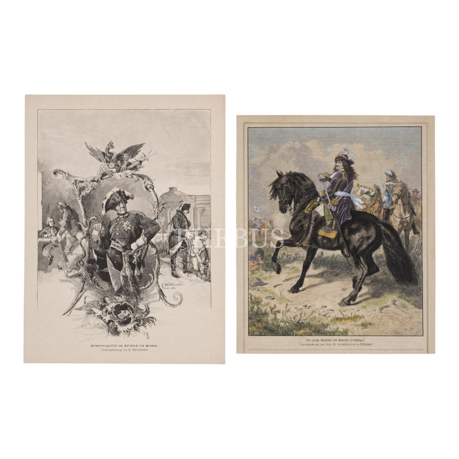 Friedrich der Große ve Georg von Derfflinger gravürleri, 21,5x28,5 cm (siyah-beyaz), 21x25 cm (renkli)...