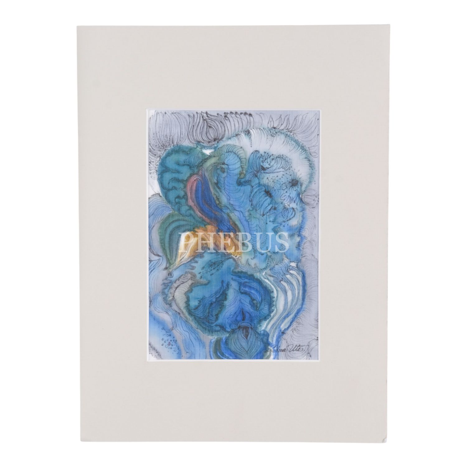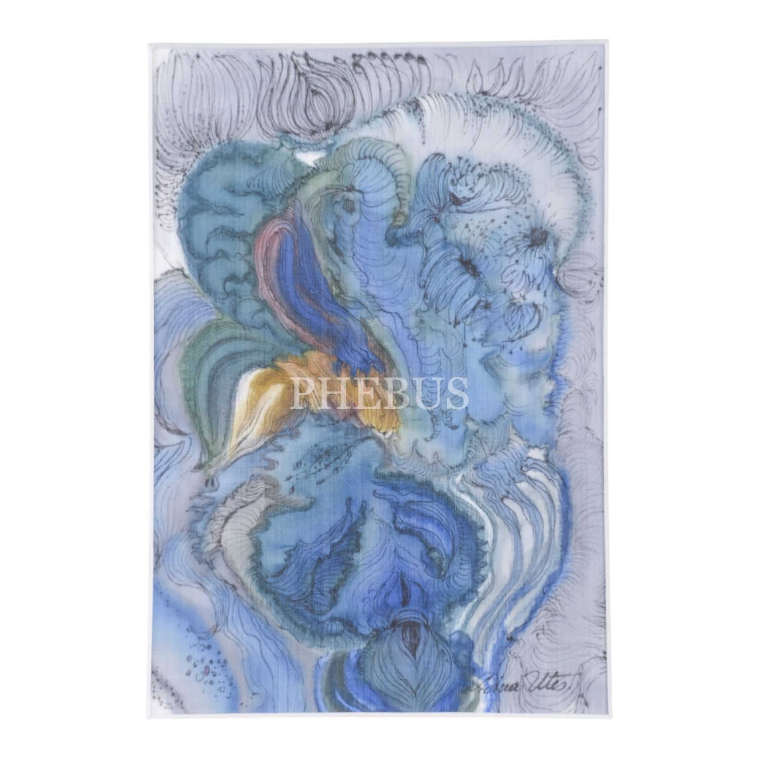 Sanatçı imzalı, kumaş üzerine el boyama desen çalışması, paspartulu, paspartusuyla birlikte 23x31 cm...
