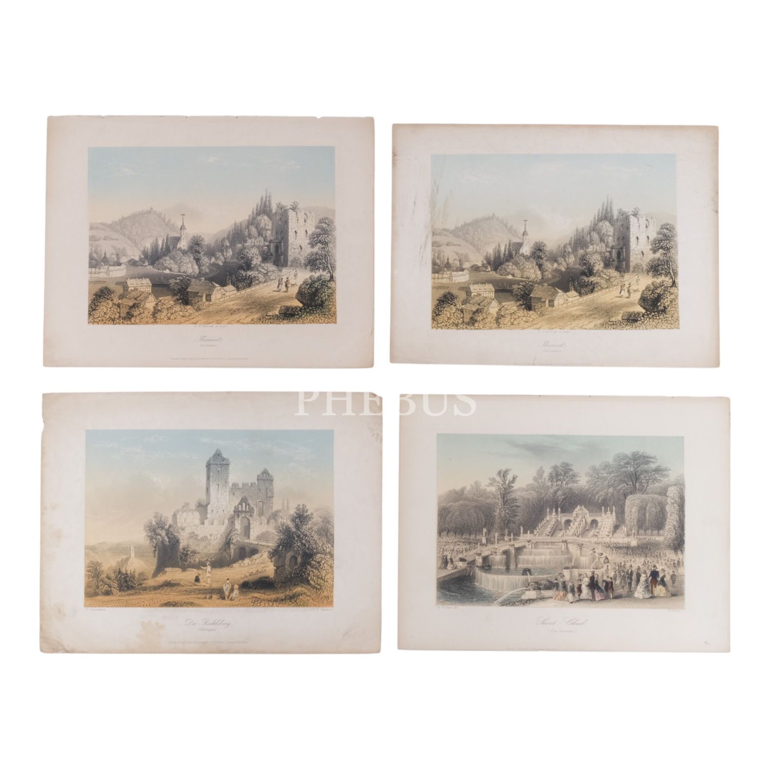 Almanya´daki bazı şato ve kalelerin görüldüğü gravür, 4 adet, 28x22 cm...