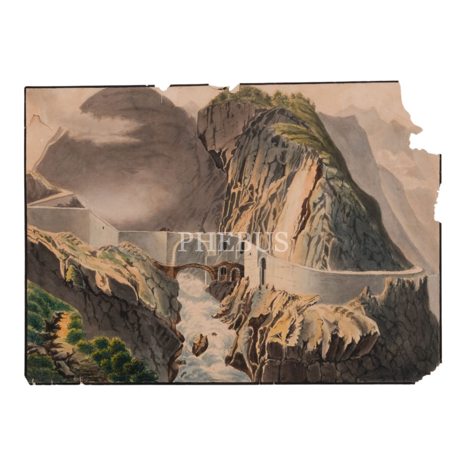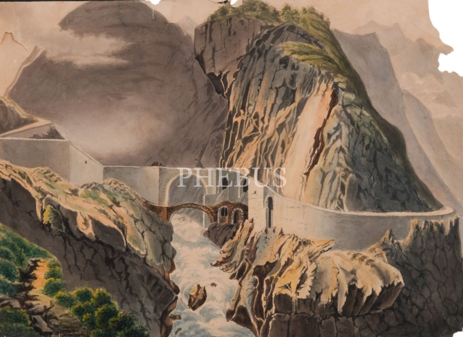 Avrupa´da bir akarsu üzerindeki köprünün tasvir edildiği baskı, 28x21 cm...