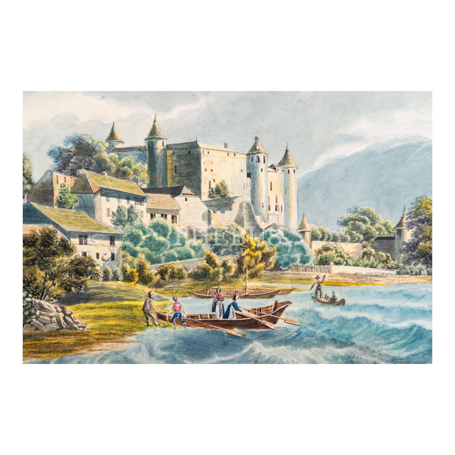 Avrupa´da bir şatonun tasvir edildiği baskı, 29x21 cm...