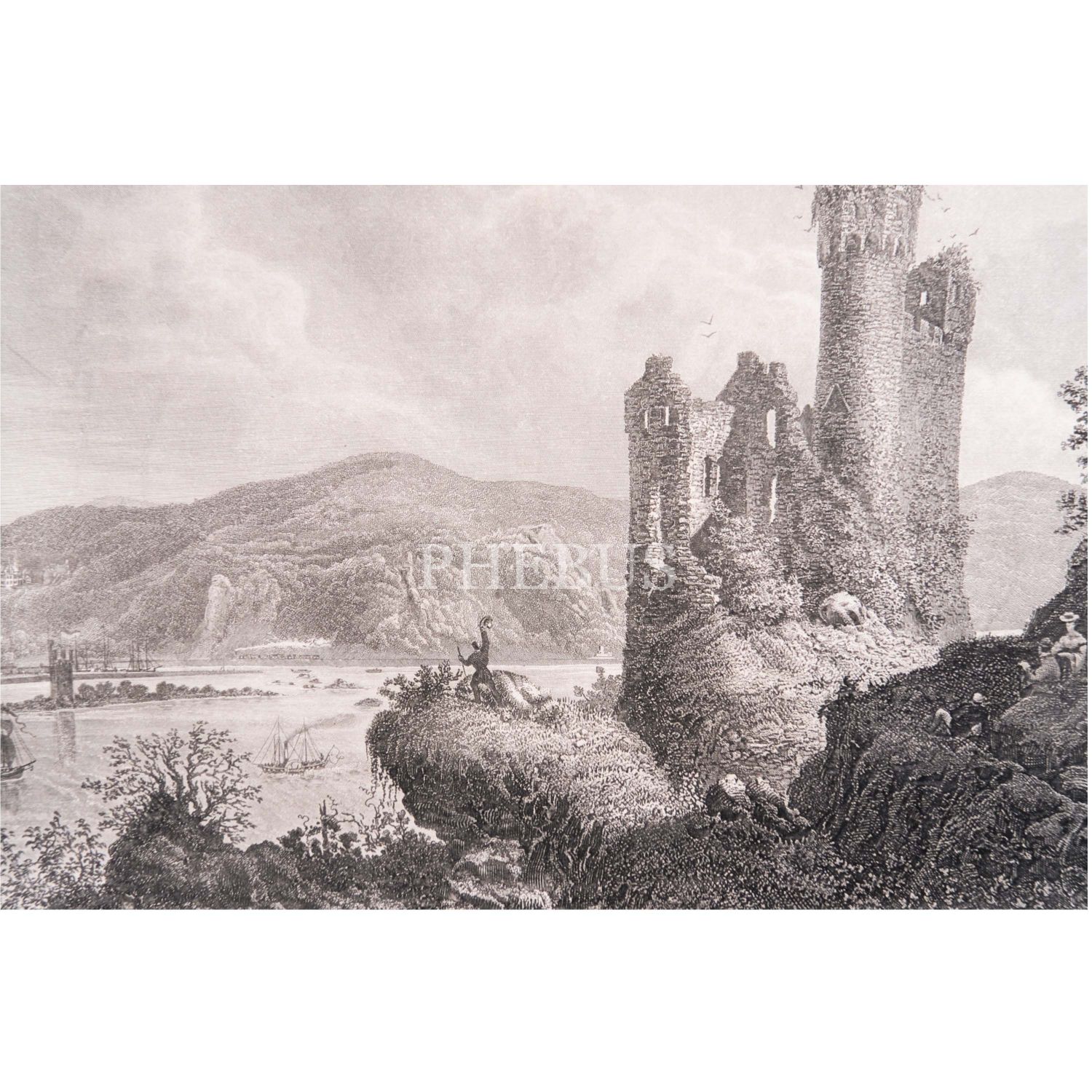 Almanya´daki Ehrenfels Kalesi´nin tasvir edildiği gravür, 33x23 cm...