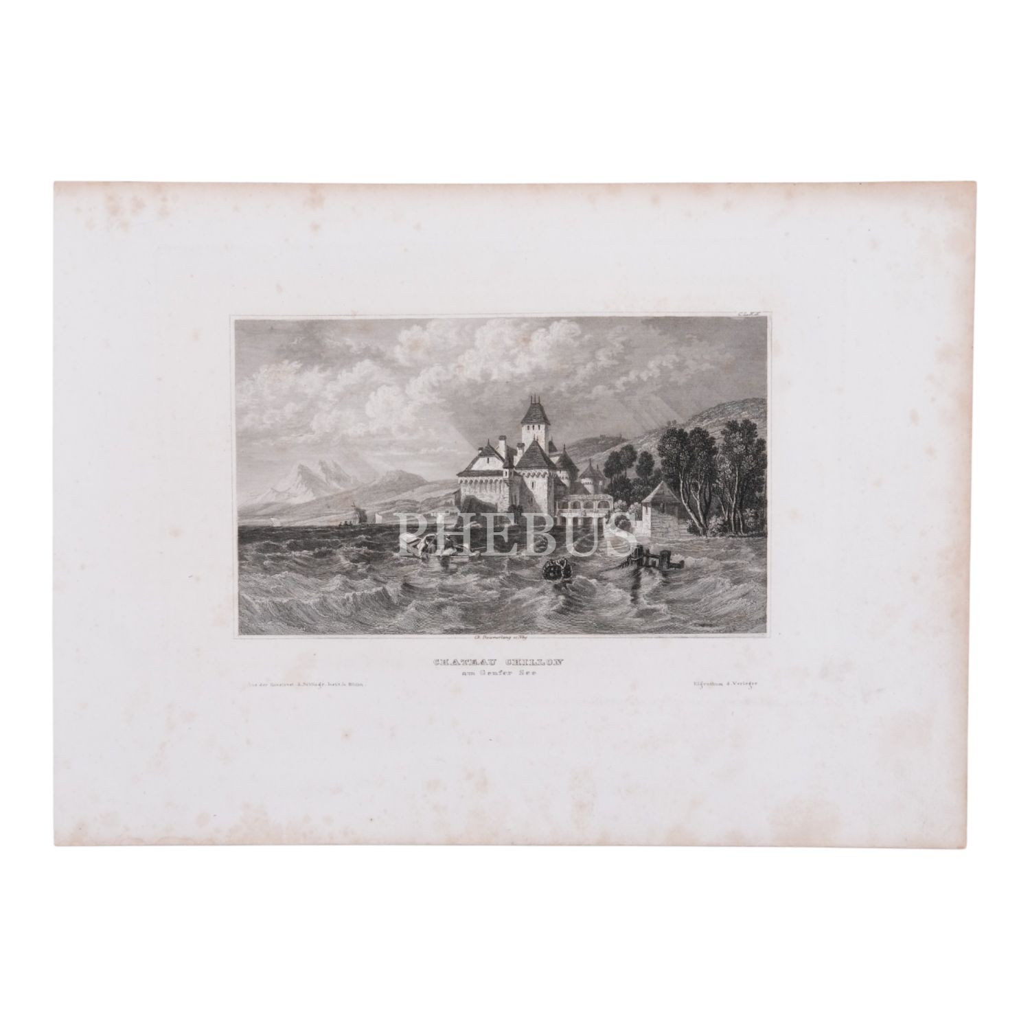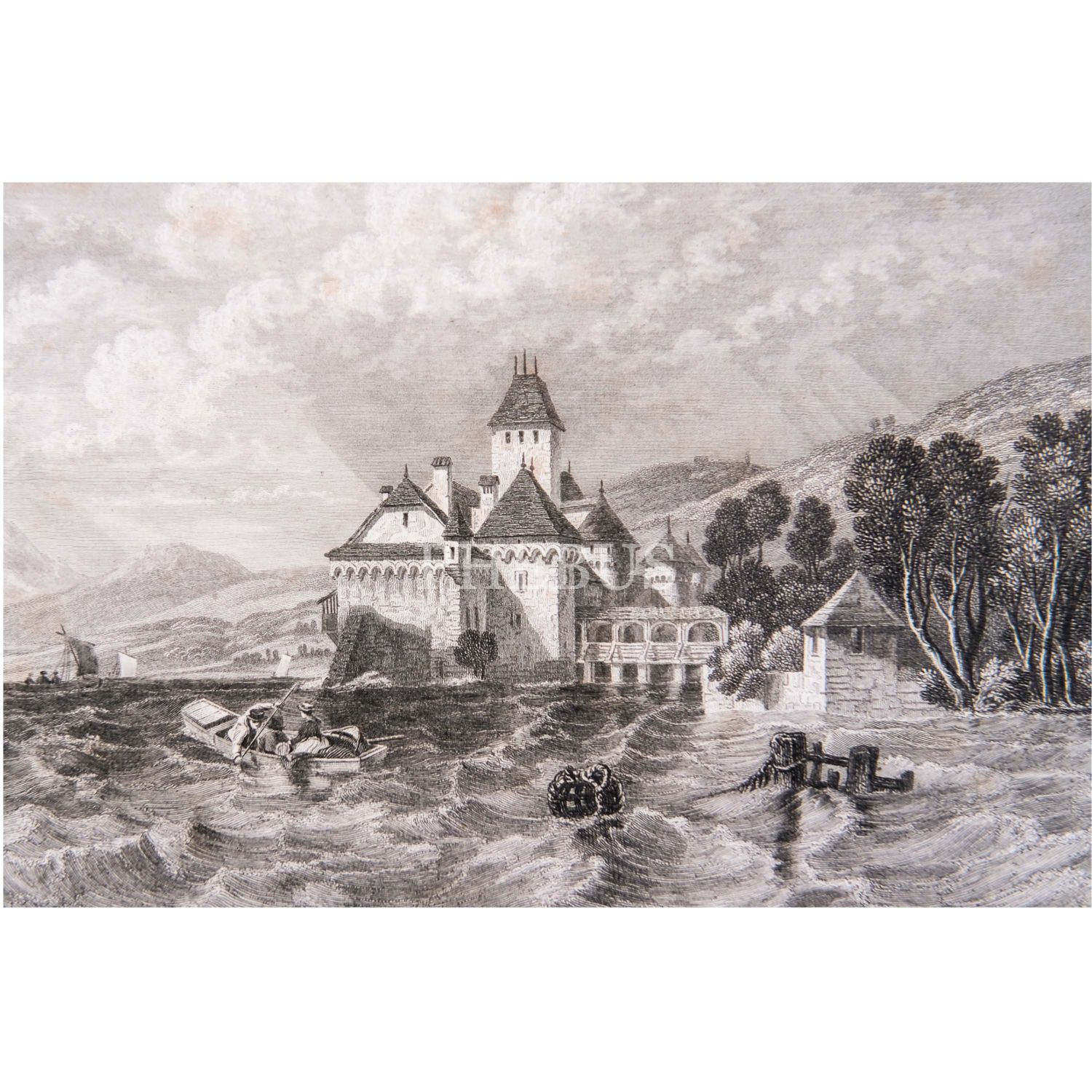 Chillon Şatosu´nun resmedildiği gravür, 26x19 cm...