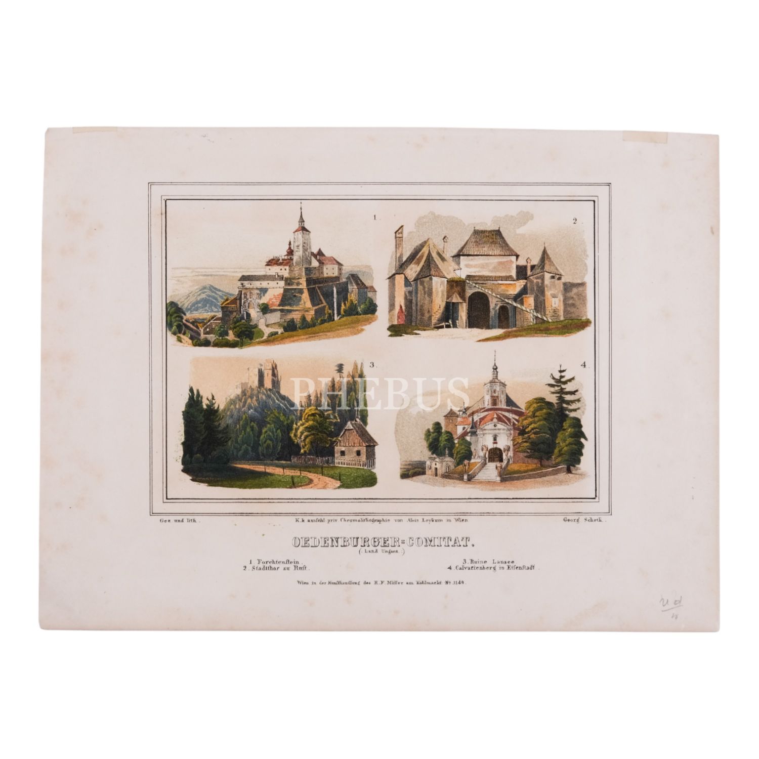 Almanya´nın Oedenburger bölgesinden yapıların tasvir edildiği gravür, 29x22 cm...