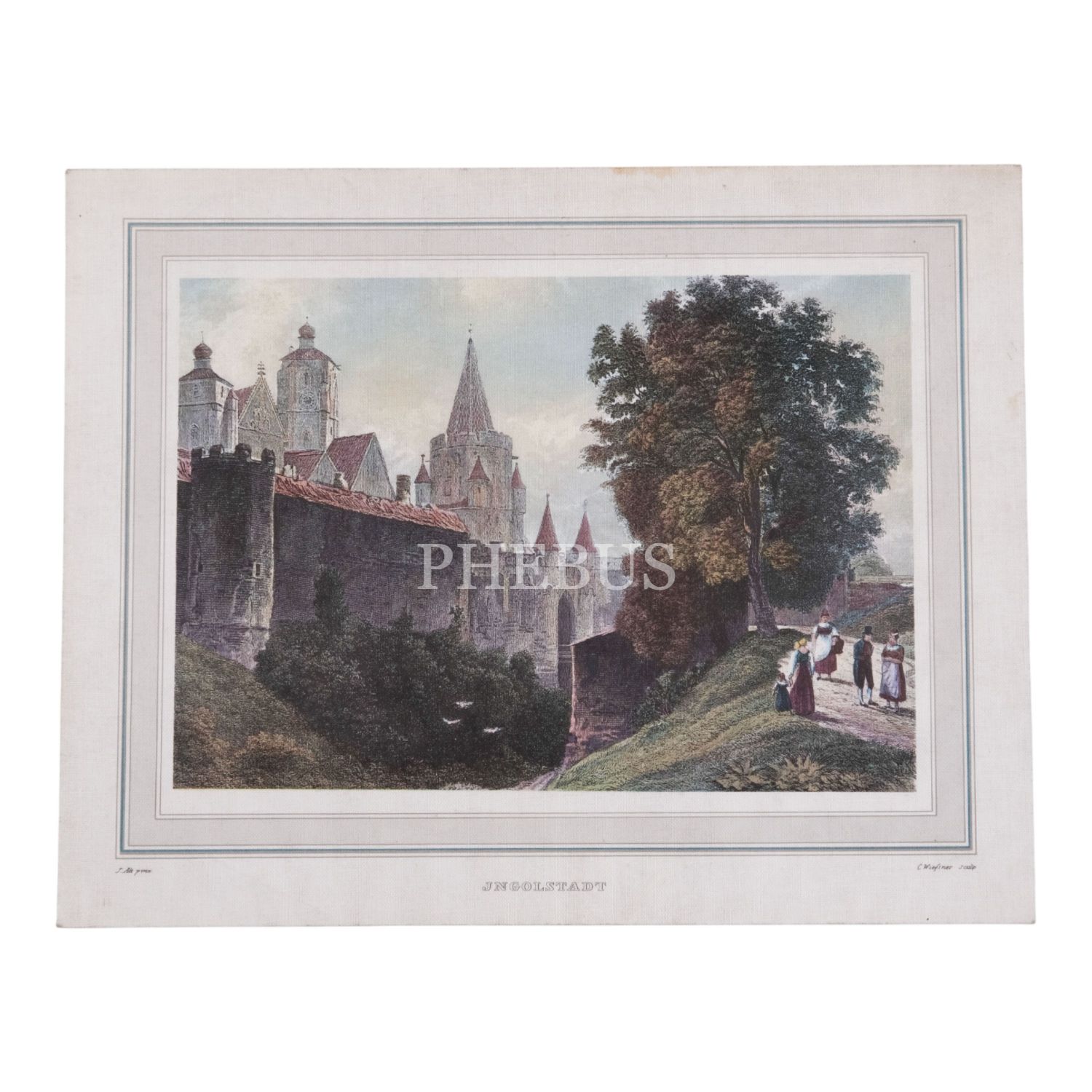 Almanya´nın Ingolstadt şehrinden bir manzaranın tasvir edildiği renkli gravür, 28x22 cm...