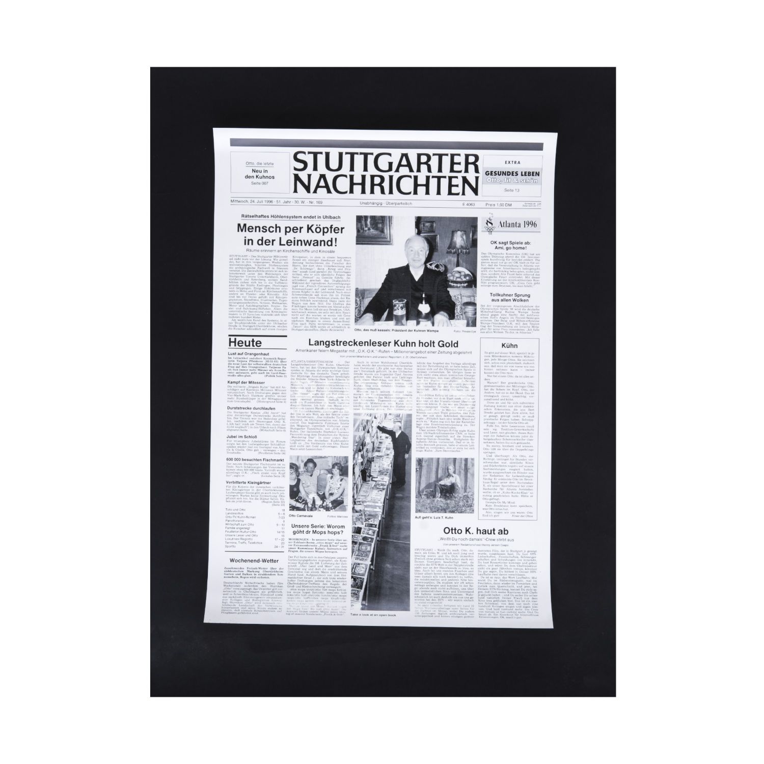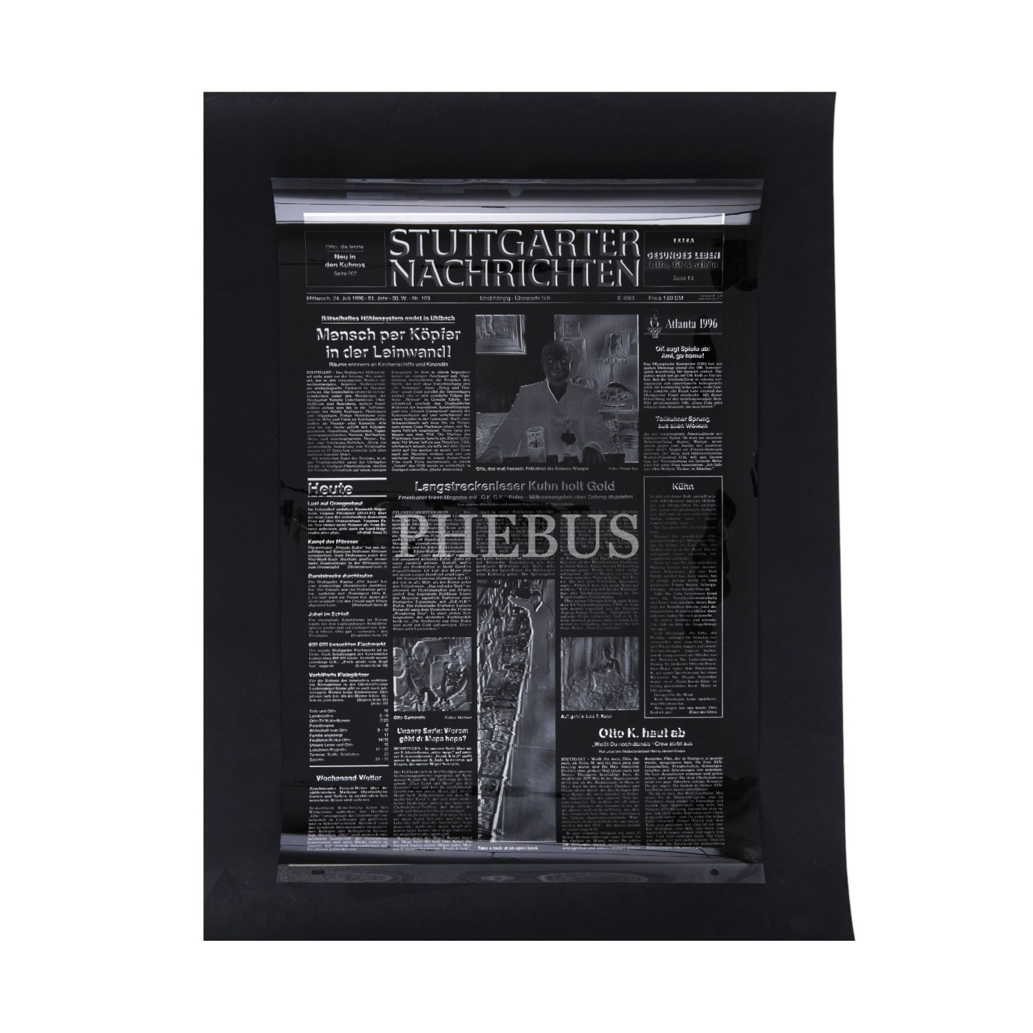 STUTTGARTER NACHRICHTEN gazetesinin 1996 tarihli bir nüshasının prova baskısı ve baskı için kullanılan negatif görüntüsü, 37x55 cm...
