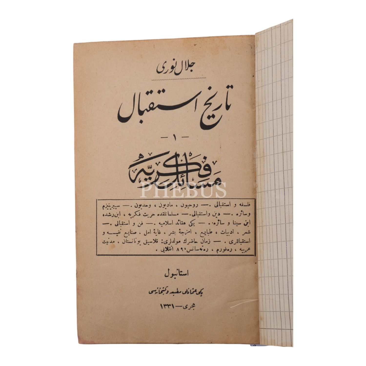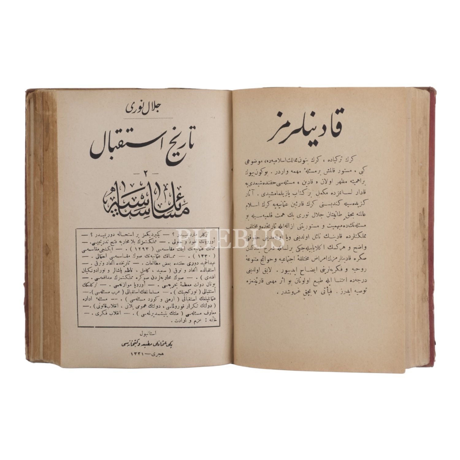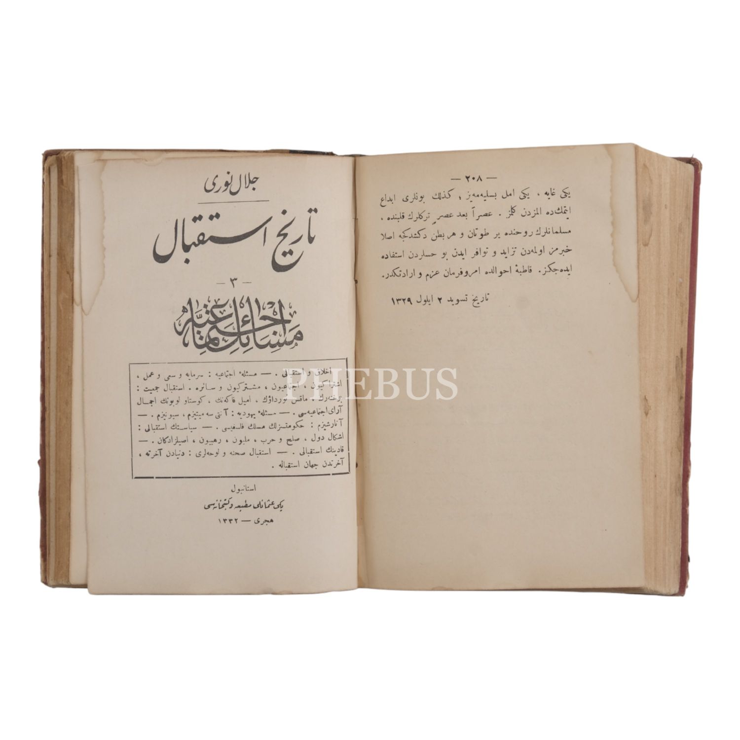 TÂRÎH-İ İSTİKBÂL, 3 cilt bir arada, Celal Nuri (İleri) 1331-1332, Yeni Osmanlı Matbaa ve Kütüphanesi, 171+208+164 sayfa, 12x18 cm...