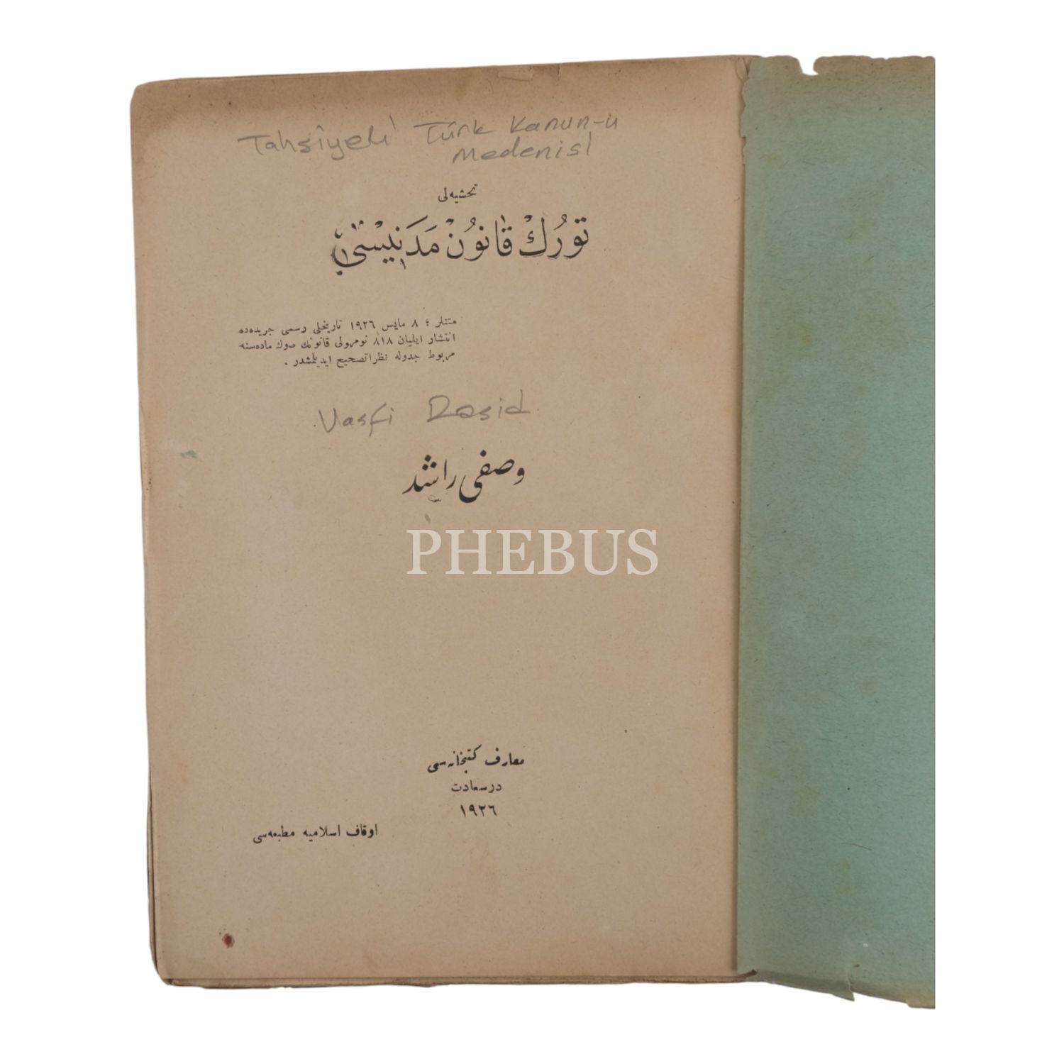 Vasfî Râşid'in Medenî Kanun eserinin güncellenmiş baskısı.