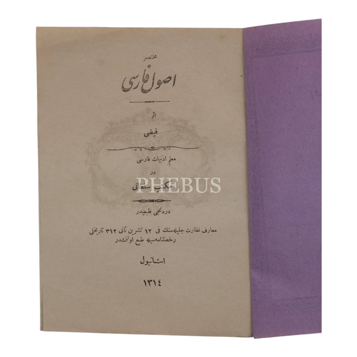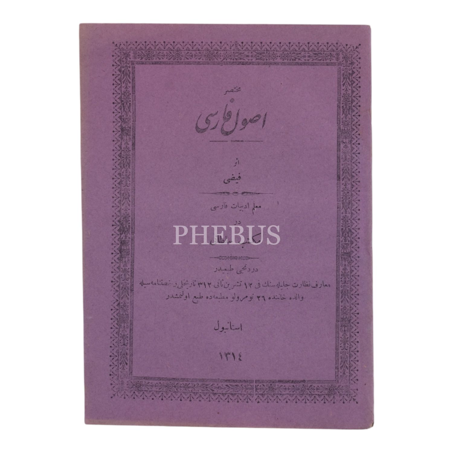 MUHTASAR USÛL-İ FÂRİSÎ, Ahmed Feyzi, 1314, Mehdi Efendi Matbaası, 46 sayfa, 14x19 cm...
