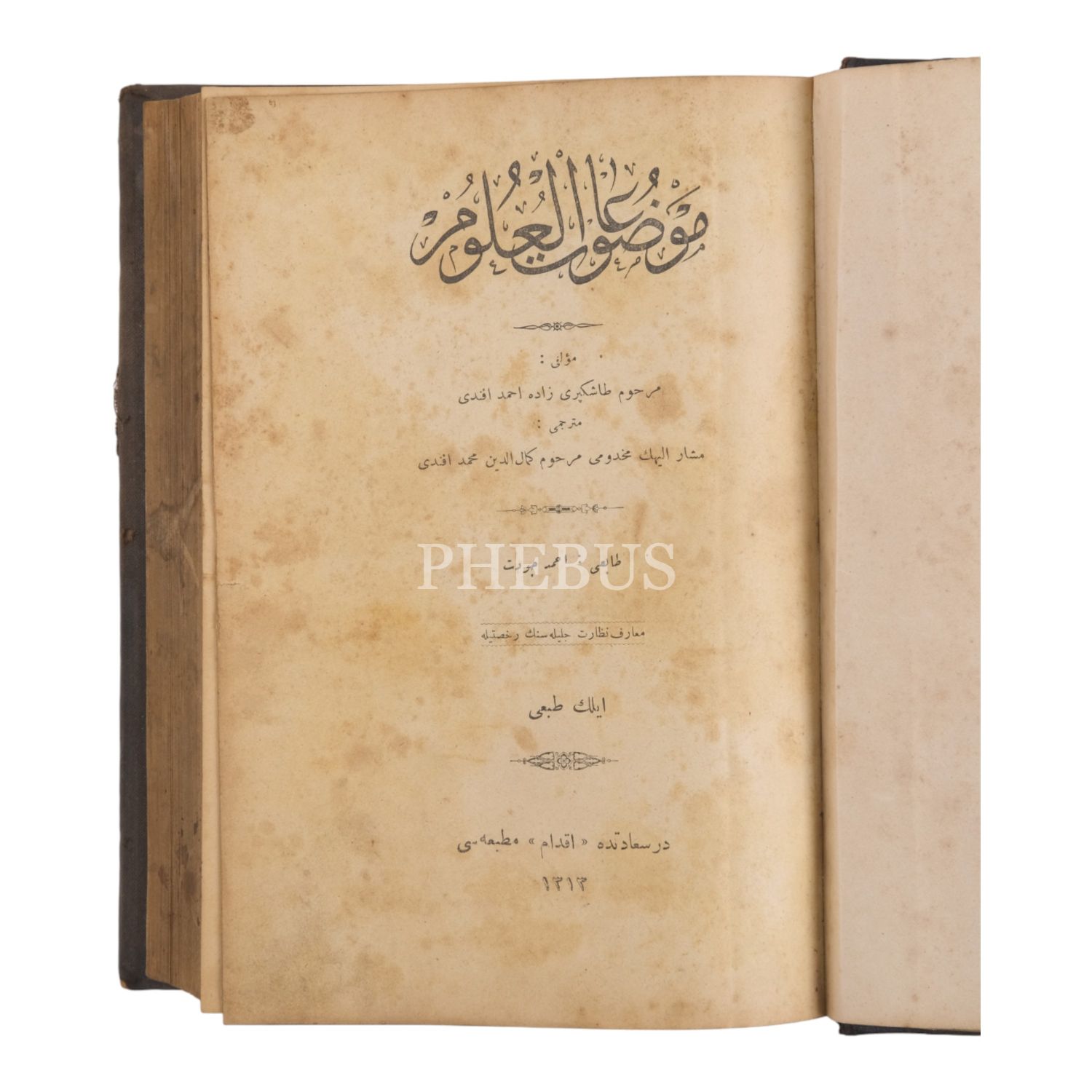 MEVZÛÂTUL´-ULÛM, 1, baskı, Taşköprüzâde Ahmed Efendi, çeviren: oğlu Kemaleddin Efendi, 1313, İkdam Matbaası, 844 sayfa, 16x24 cm...