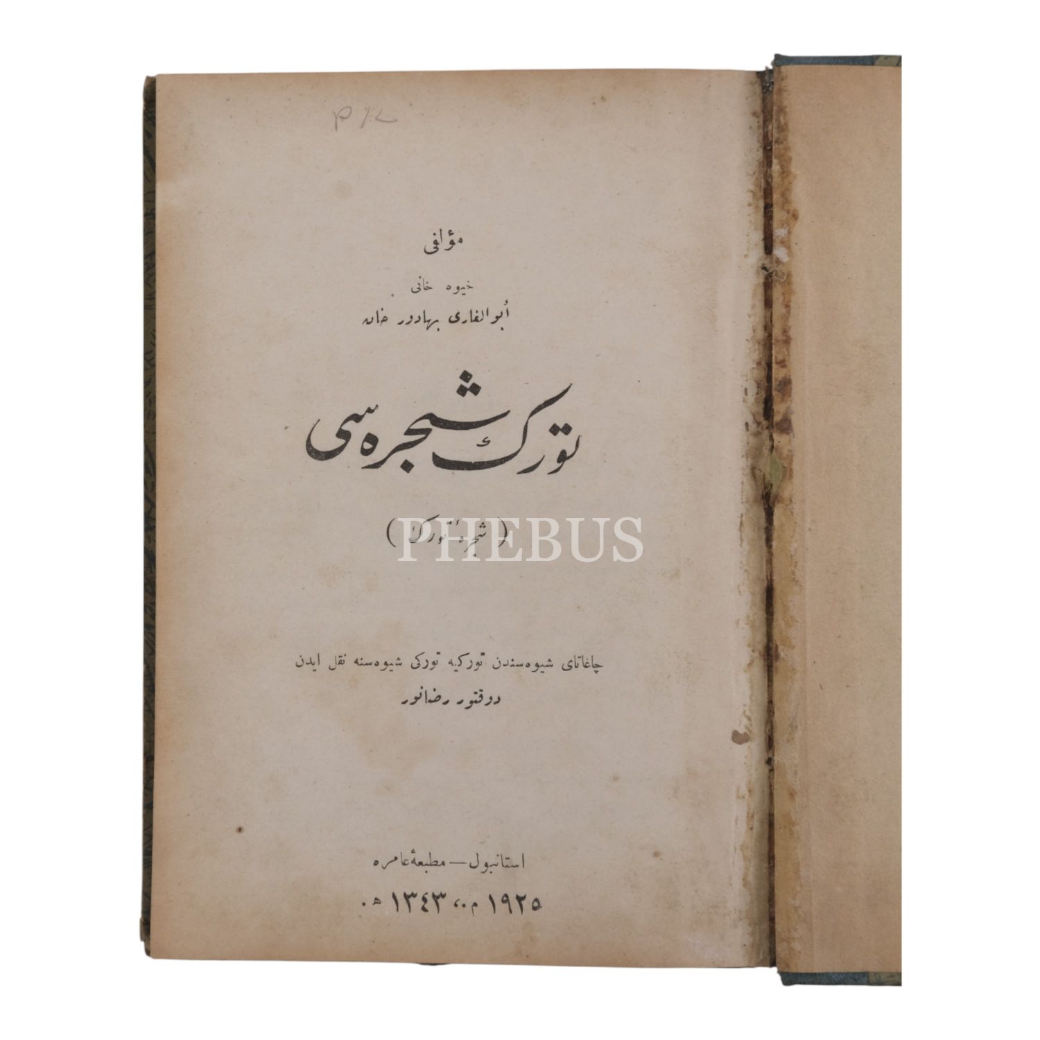 TÜRK ŞECERESİ, Ebülgazi Bahadır Han, sadeleştiren: Doktor Rıza Nur, 1925, 14x20 cm...