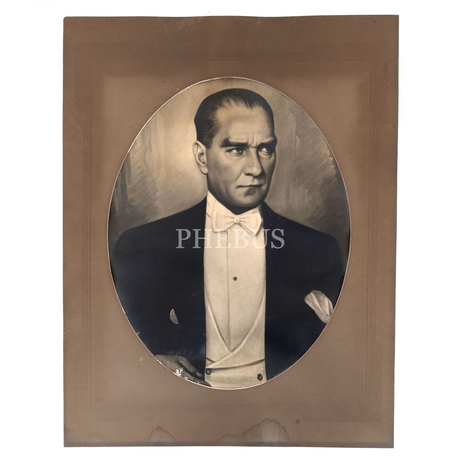 Mustafa Kemal Atatürk´ün İstiklâl Madalyası ile resmedildiği, Foto Sabah ıslak imzalı portre fotoğrafı, fotoğraf (paspartusuyla birlikte) 51,5x66 cm...