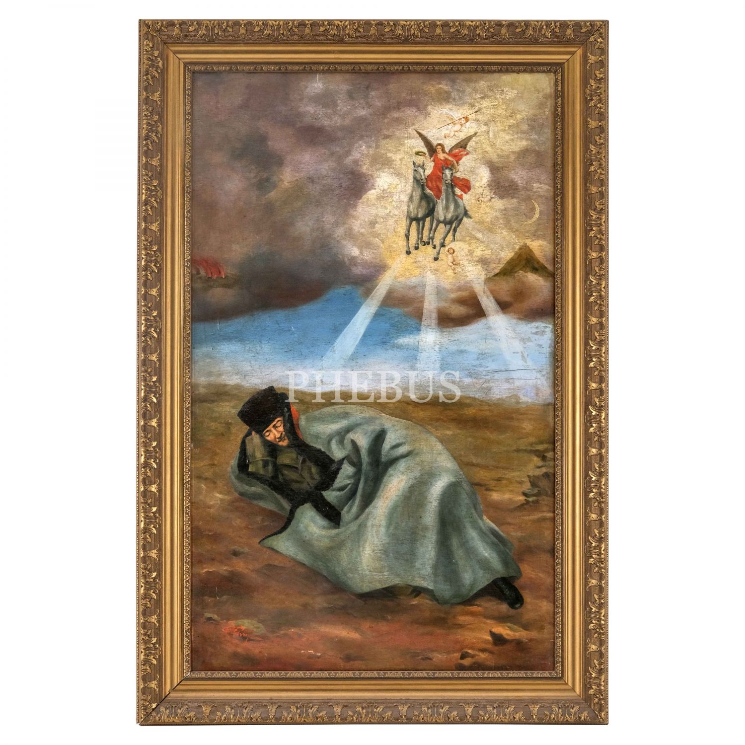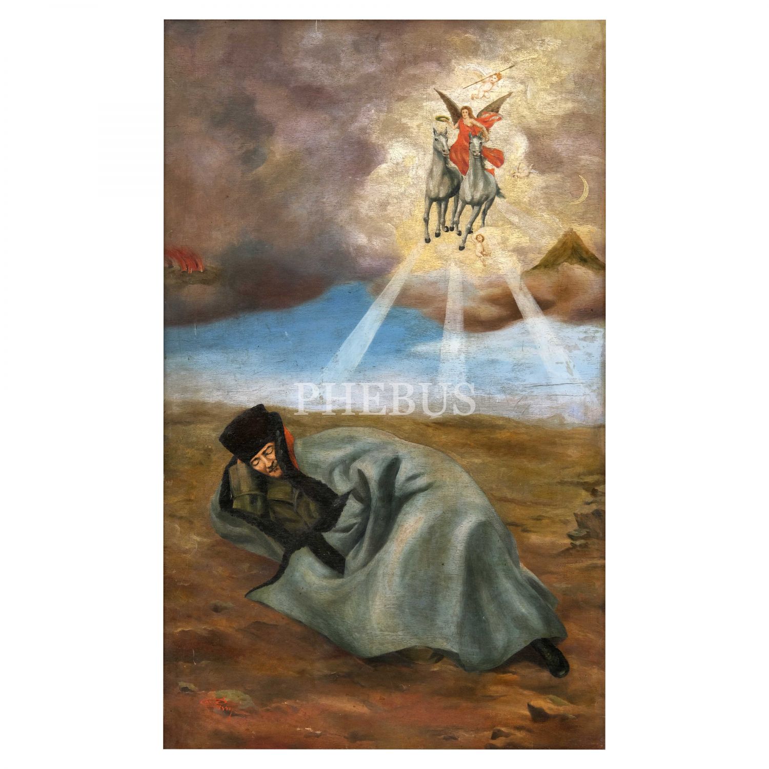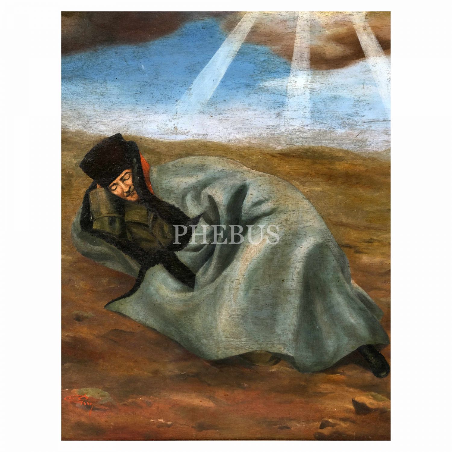 "Atatürk Cephede", Sırrı Eldem imzalı, kontrplak üzerine yağlı boya, resim 61x100 cm, çerçeve 80x120 cm...