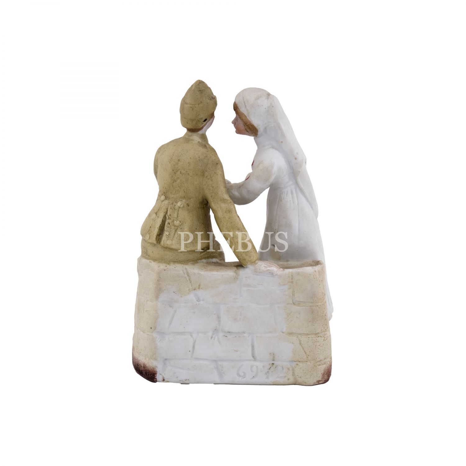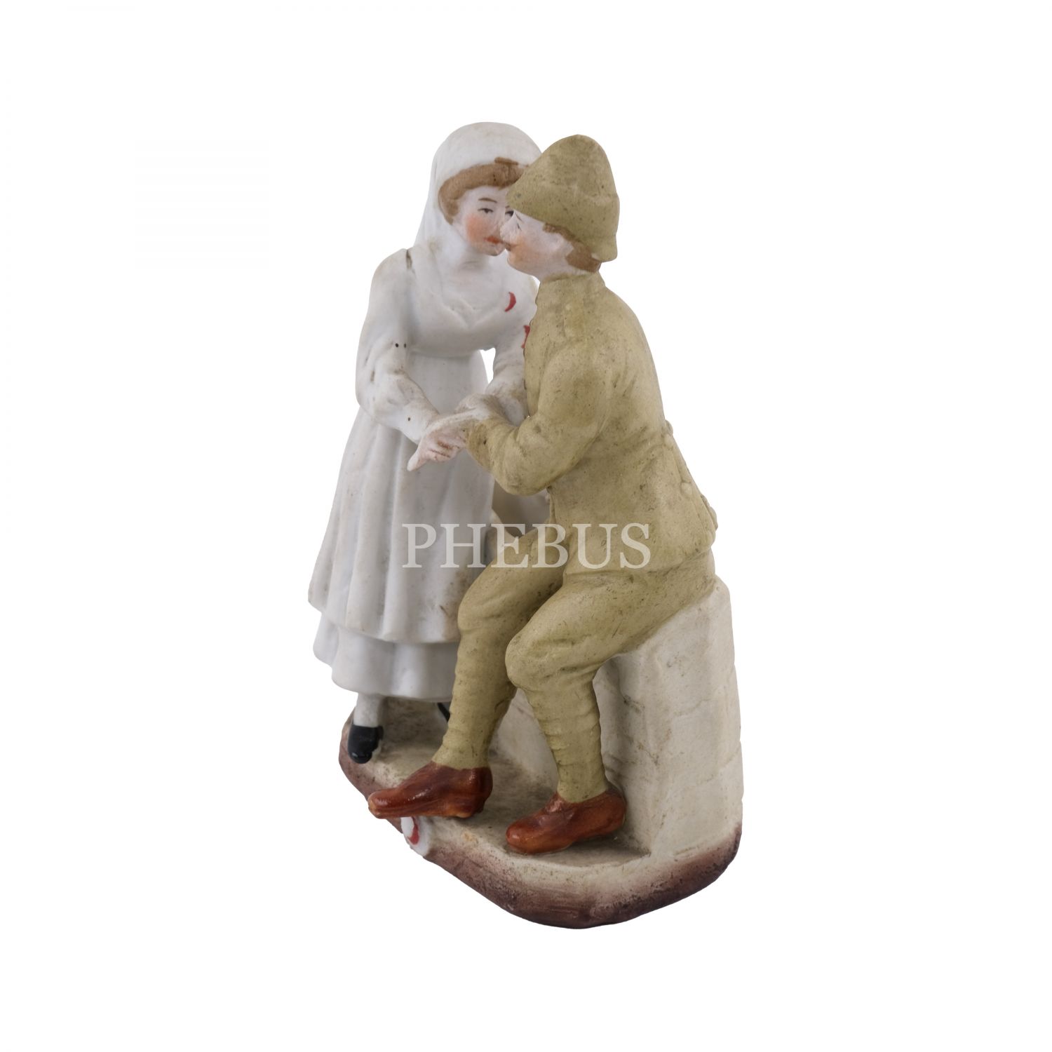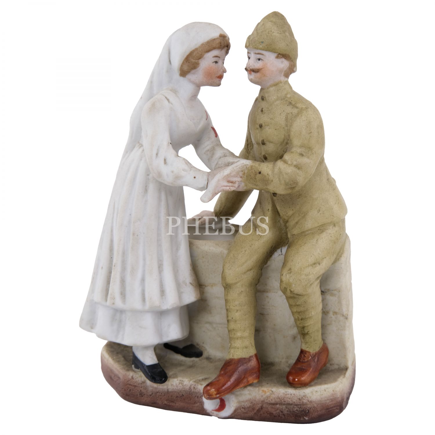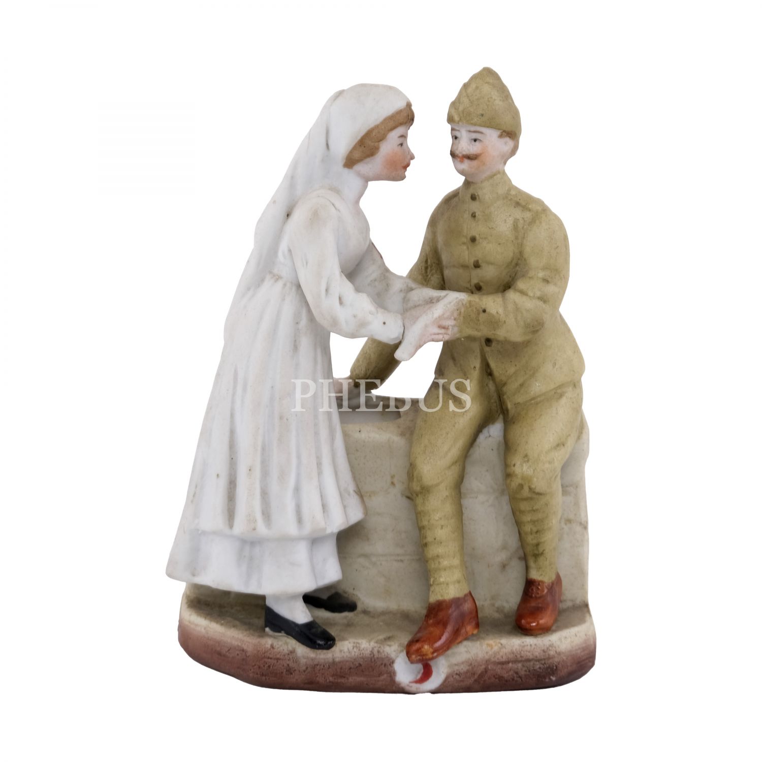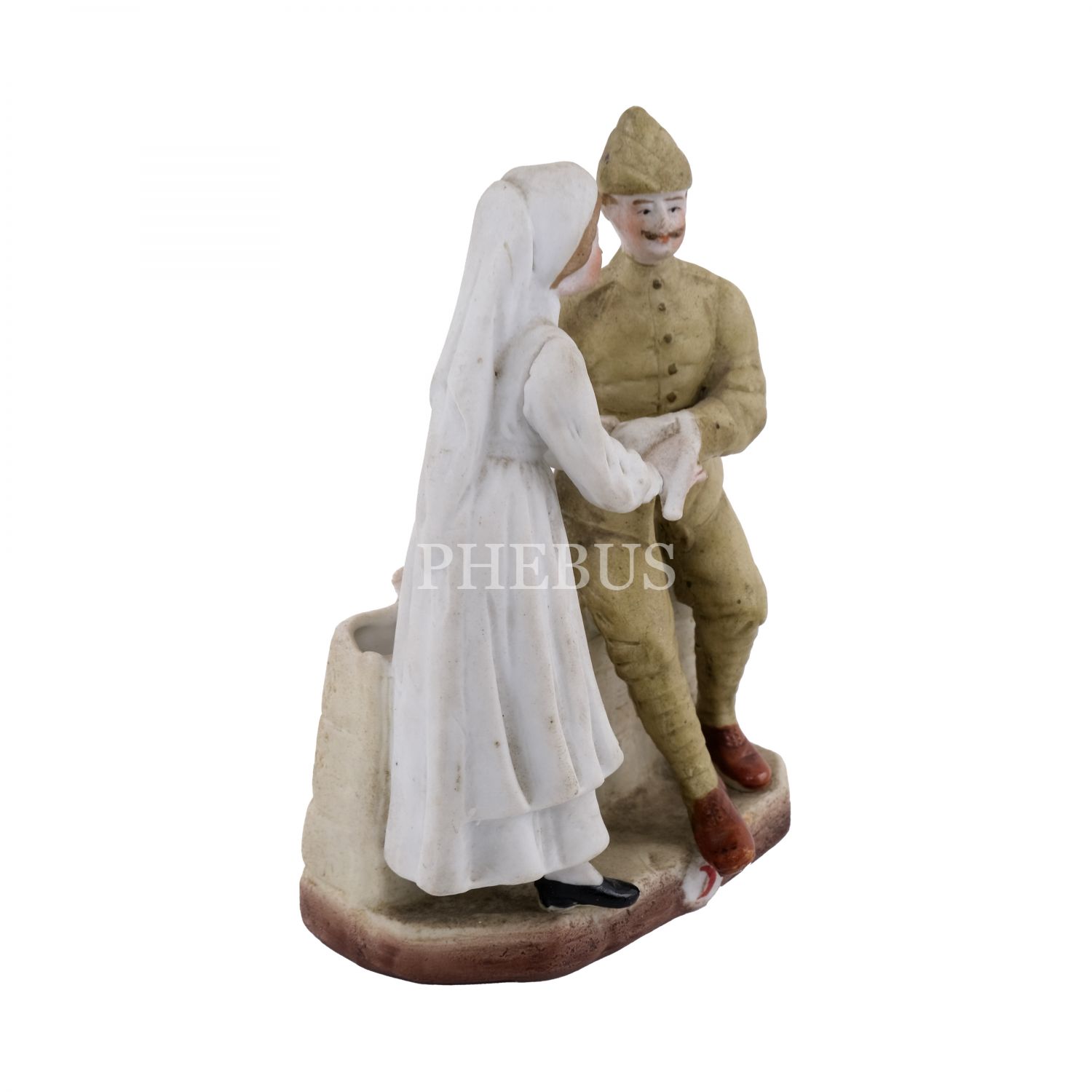 Çanakkale askerinin yarasını saran hemşire formunda, çok nadir bir Hilal-i Ahmer Cemiyeti biblosu (seramik), 8x11,5x4,5 cm...