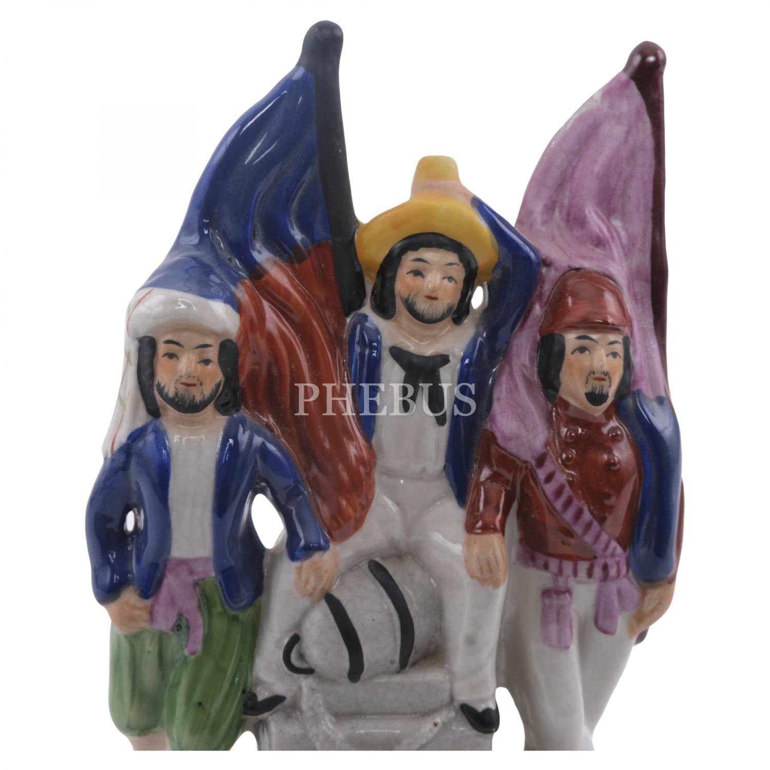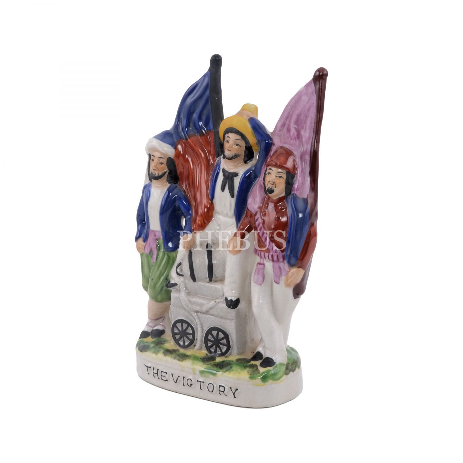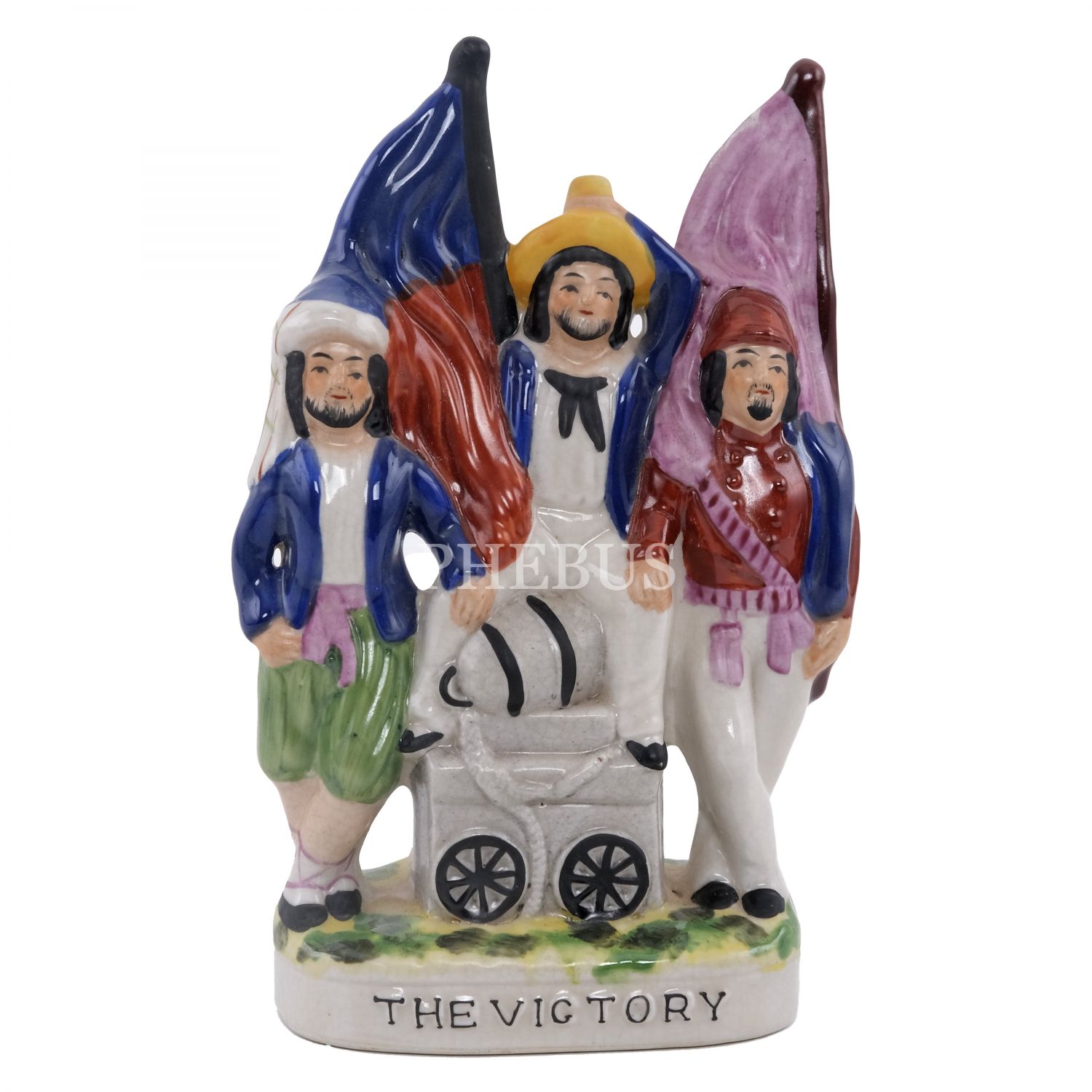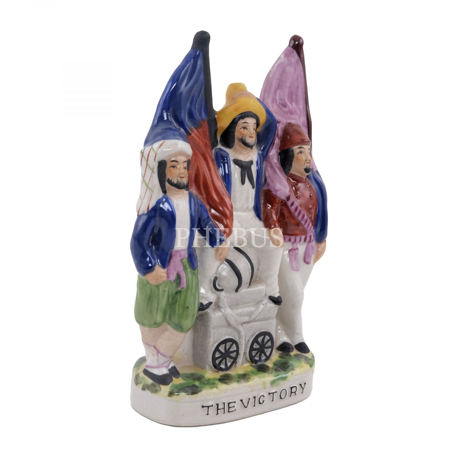 Türk, Fransız ve İngiliz askerlerinin tasvir edildiği, kaidesi "The Victory" (Zafer) kabartma yazılı seramik biblo, 13,5x21,5x6,5 cm...