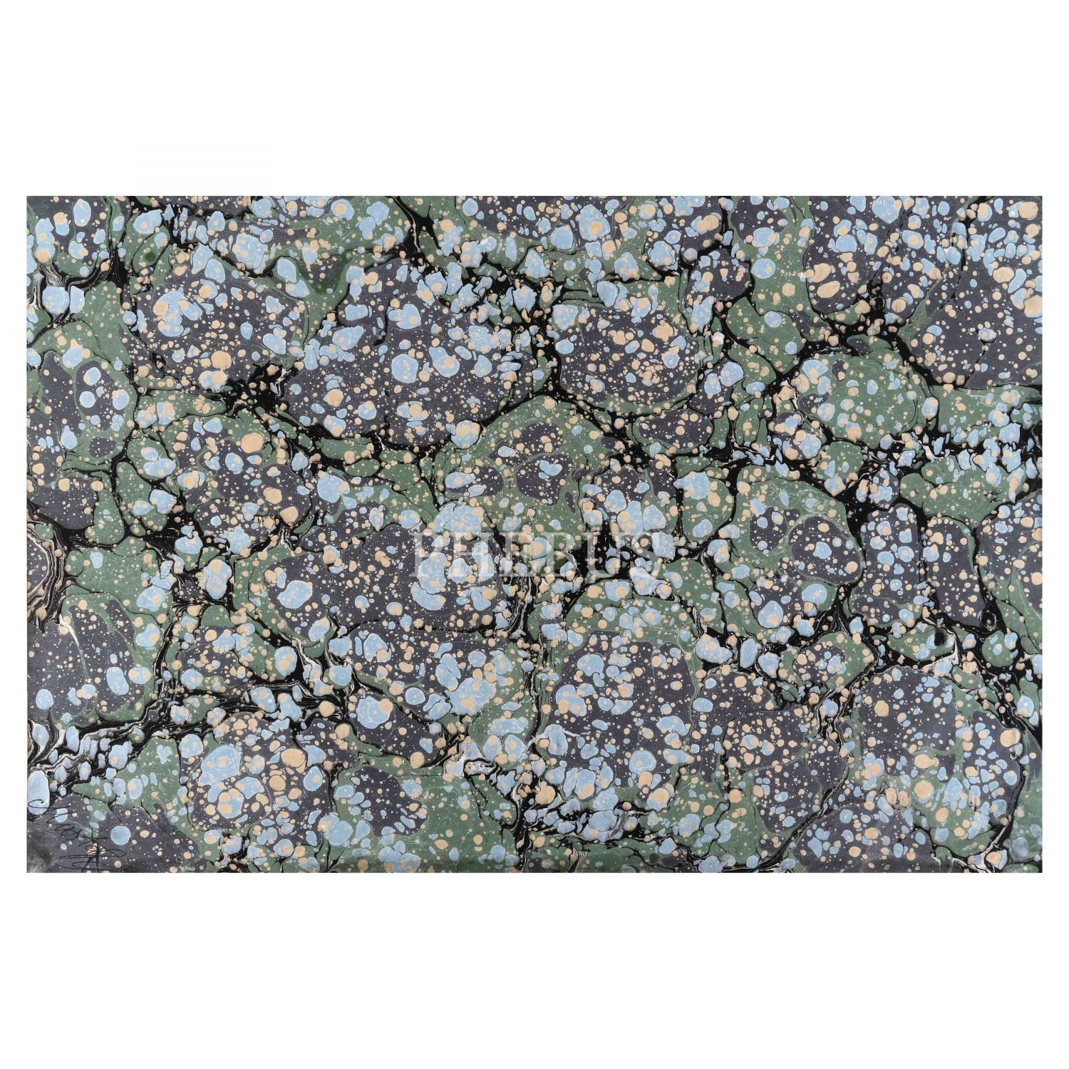 Mustafa Düzgünman imzalı battal ebru, ebru ölçü: 33x46 cm, paspartu ölçü: 43x57 cm...