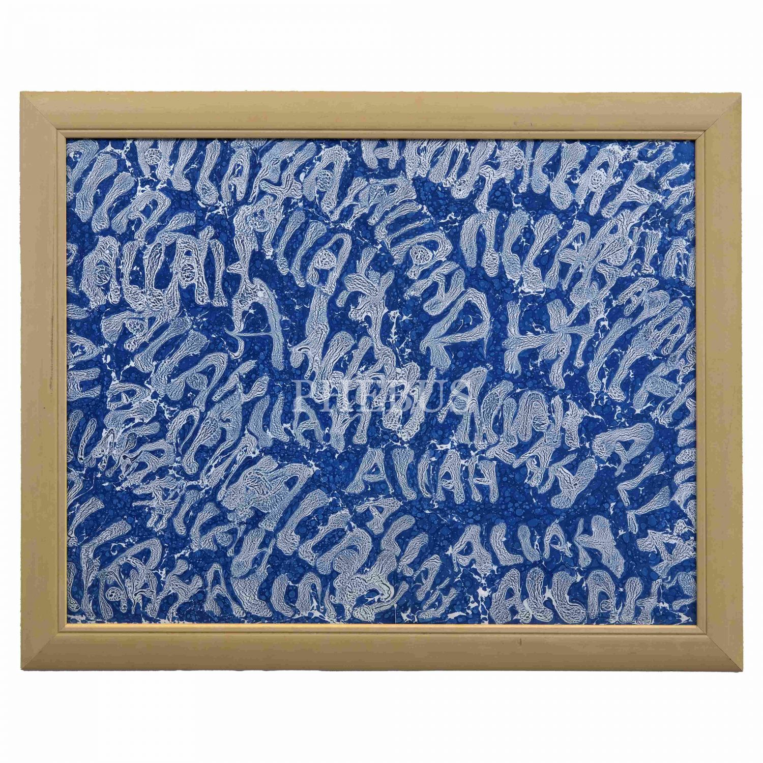 Yeni harflerle "Allah" yazılı büyük boy özgün tasarım kumlu ebru.