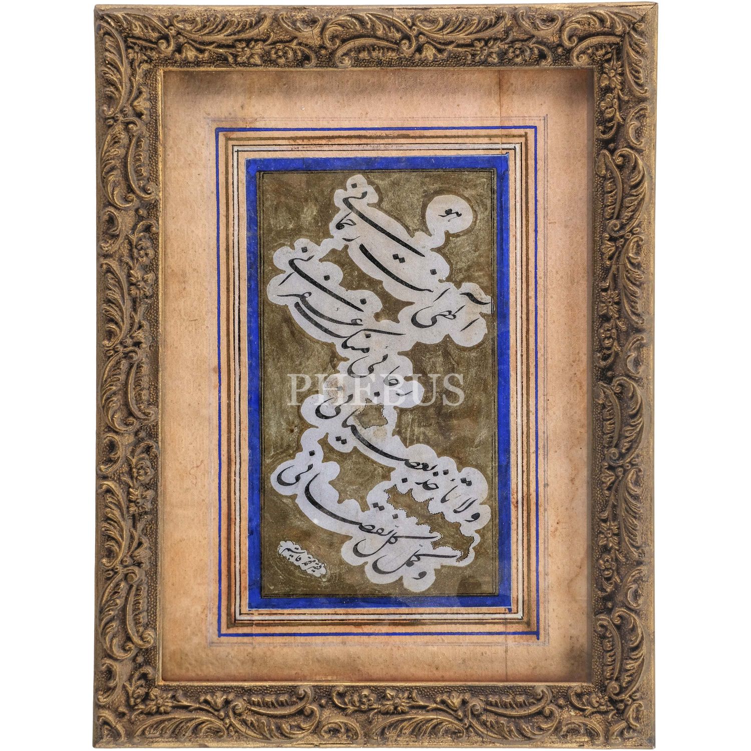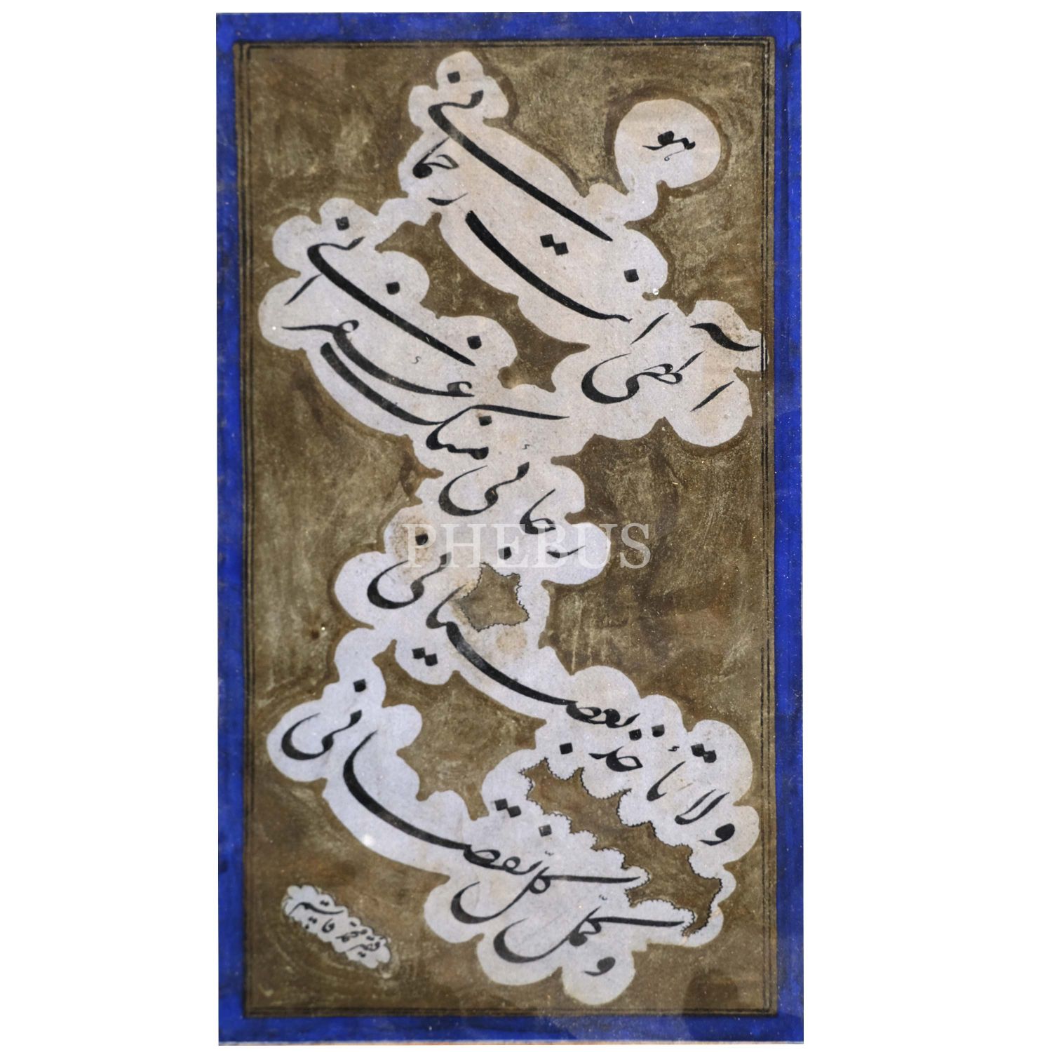 Mehmed Kāsım ketebeli talik mail kıta, yazı ölçü: 9x16 cm, çerçeve içi ölçü: 16x22 cm...