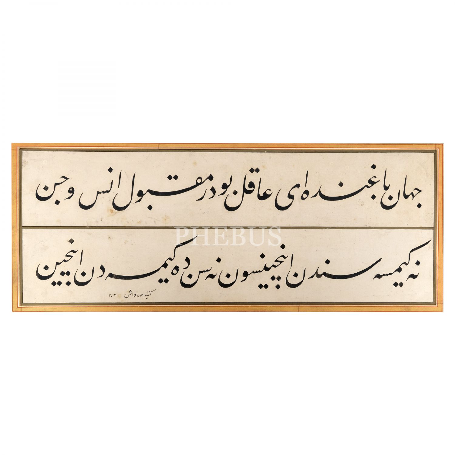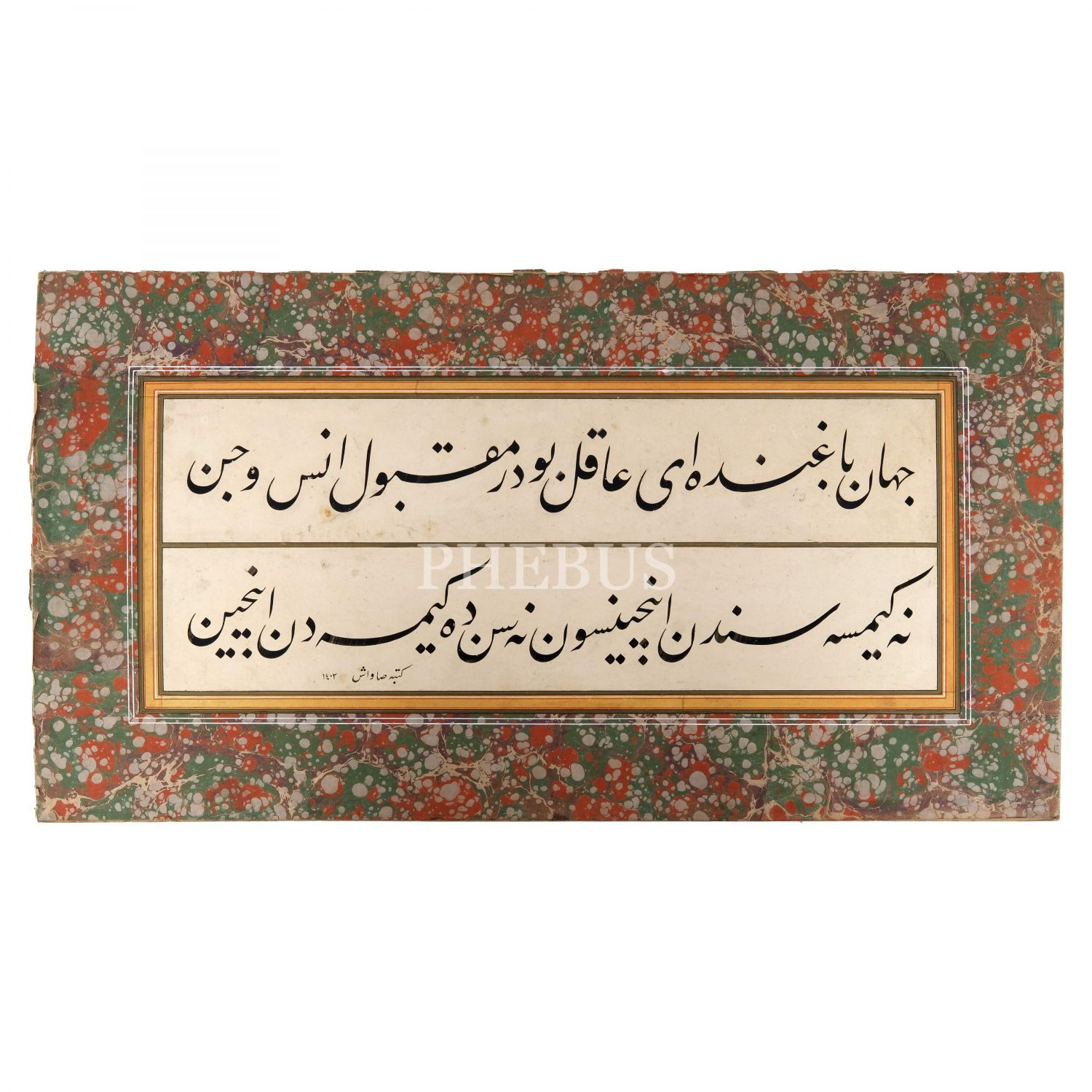 Okunuşu: "Cihân bağında ey âkil budur makbûl-i ins ü cin / Ne kimse senden incinsin ne sen de kimseden incin" (Erzurumlu İbrahim Hakkı).